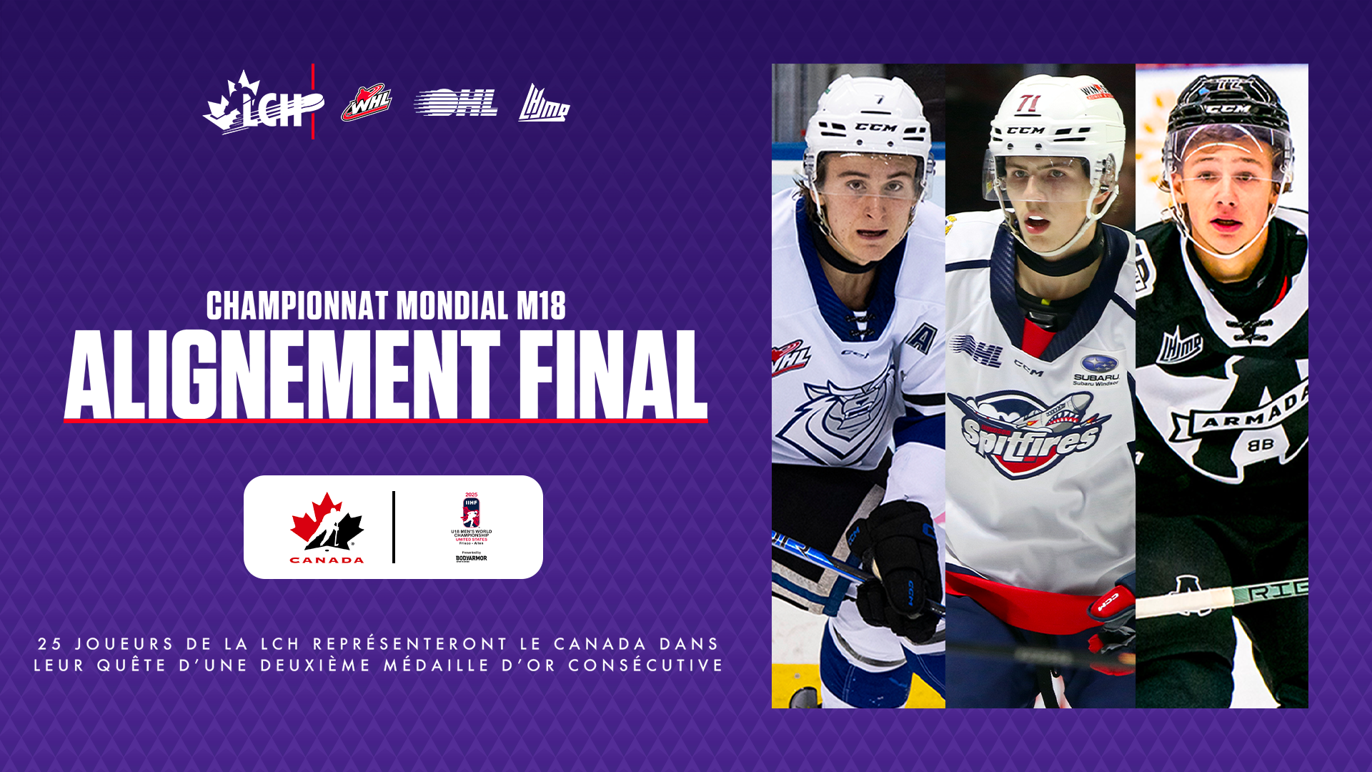 25 joueurs de la LCH représenteront le Canada au Championnat mondial masculin des moins de 18 ans 2025 de l’IIHF