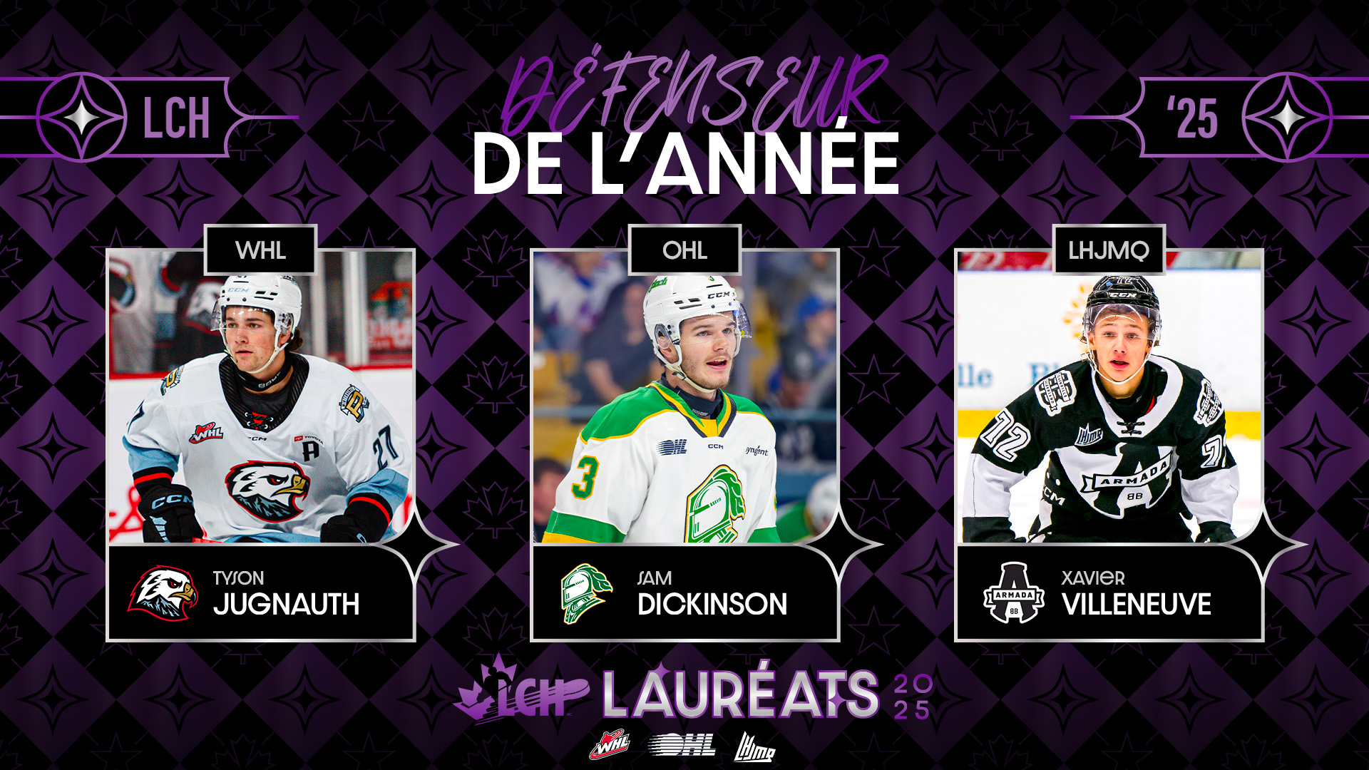 Jugnauth, Dickinson et Villeneuve nommés finalistes pour le Prix du Défenseur de l’année de la LCH pour la saison 2024–2025