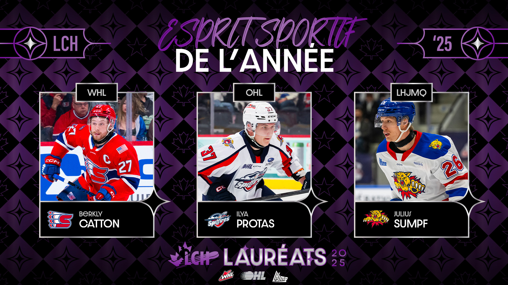 Catton, Protas et Sumpf nommés finalistes pour le Prix de l’Esprit sportif de la LCH pour la saison 2024–2025