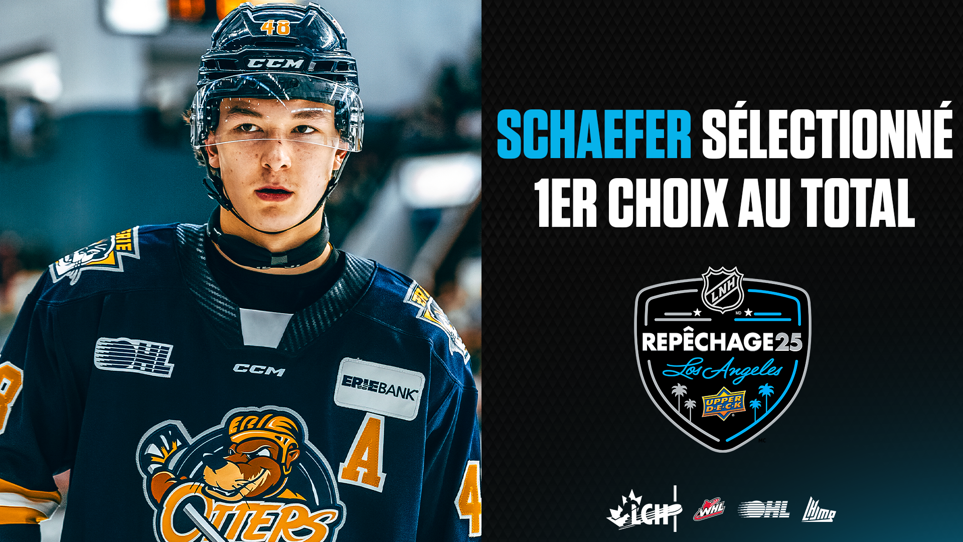 Matthew Schaefer des Otters d’Érié, choisi 1er par les Islanders au repêchage 2025 de la LNH, devient le 2e défenseur de la LCH sélectionné au 1er rang au 21e siècle