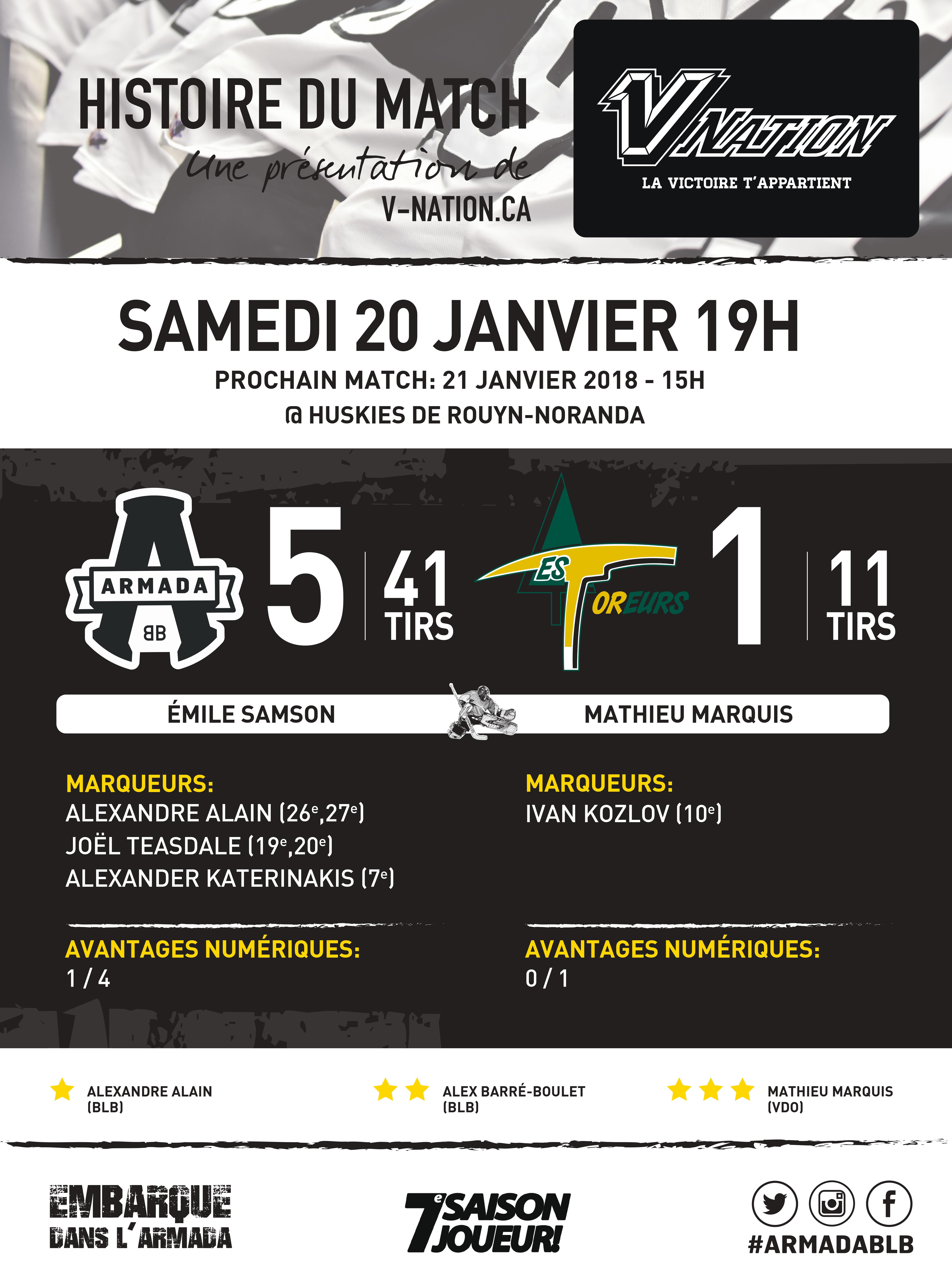 {"league":"lhjmq","site_api_key":"f322673b6bcae299","season":"","sponsor":false,"link":false,"days_ahead":"6","days_back":"2","team":"19","team_class":"lhjmq-blb","base_url":"https:\/\/chl.ca\/lhjmq-armada","language":"fr","view":"scorebar","scoreboard":[{"ID":"32426","SeasonID":"211","league_id":"1","game_number":"518","game_letter":"","game_type":"","quick_score":"0","Date":"2026-03-05","FloCoreEventId":"14326718","FloLiveEventId":"167149","GameDate":"Thu, Mar 5","GameDateISO8601":"2026-03-05T19:00:00-04:00","ScheduledTime":"19:00:00","ScheduledFormattedTime":"7:00 pm","Timezone":"Canada\/Atlantic","TicketUrl":"https:\/\/www.ticketmaster.ca\/halifax-mooseheads-tickets\/artist\/927104?home_away=home","HomeID":"5","HomeCode":"Hal","HomeCity":"Halifax","HomeNickname":"Mooseheads","HomeLongName":"Halifax, Mooseheads","HomeDivision":"Eastern Conference","HomeGoals":"3","HomeAudioUrl":"https:\/\/halifax.citynews.ca","HomeVideoUrl":"","HomeWebcastUrl":"https:\/\/flosports.link\/40vqNJF","VisitorID":"19","VisitorCode":"BLB","VisitorCity":"Blainville-Boisbriand","VisitorNickname":"Armada","VisitorLongName":"Blainville-Boisbriand, Armada","VisitingDivision":"Western Conference","VisitorGoals":"6","VisitorAudioUrl":"","VisitorVideoUrl":"","VisitorWebcastUrl":"https:\/\/flosports.link\/3IIYOA5","Period":"3","PeriodNameShort":"3","PeriodNameLong":"3rd","GameClock":"00:00","GameSummaryUrl":"32426","HomeWins":"26","HomeRegulationLosses":"27","HomeOTLosses":"3","HomeShootoutLosses":"3","VisitorWins":"36","VisitorRegulationLosses":"17","VisitorOTLosses":"5","VisitorShootoutLosses":"1","GameStatus":"4","Intermission":"0","GameStatusString":"Final","GameStatusStringLong":"Final","Ord":"2026-03-05 18:00:00.000000","venue_name":"Scotiabank Centre","venue_location":"Halifax NS","league_name":"Ligue de hockey junior Maritimes Qu\u00e9bec","league_code":"lhjmq","TimezoneShort":"AST","HomeLogo":"https:\/\/assets.leaguestat.com\/lhjmq\/logos\/5_211.png","VisitorLogo":"https:\/\/assets.leaguestat.com\/lhjmq\/logos\/19.png","FloHockeyUrl":"https:\/\/flohockey.tv\/events\/14326718","combined_client_code":null},{"ID":"32431","SeasonID":"211","league_id":"1","game_number":"523","game_letter":"","game_type":"","quick_score":"0","Date":"2026-03-06","FloCoreEventId":"14326731","FloLiveEventId":"167155","GameDate":"Fri, Mar 6","GameDateISO8601":"2026-03-06T19:00:00-04:00","ScheduledTime":"19:00:00","ScheduledFormattedTime":"7:00 pm","Timezone":"Canada\/Atlantic","TicketUrl":"https:\/\/www.ticketmaster.ca\/moncton-wildcats-tickets\/artist\/891817?home_away=home","HomeID":"1","HomeCode":"Mon","HomeCity":"Moncton","HomeNickname":"Wildcats","HomeLongName":"Moncton, Wildcats","HomeDivision":"Eastern Conference","HomeGoals":"4","HomeAudioUrl":"https:\/\/inspire.fm\/","HomeVideoUrl":"","HomeWebcastUrl":"https:\/\/flosports.link\/40vqONJ","VisitorID":"19","VisitorCode":"BLB","VisitorCity":"Blainville-Boisbriand","VisitorNickname":"Armada","VisitorLongName":"Blainville-Boisbriand, Armada","VisitingDivision":"Western Conference","VisitorGoals":"1","VisitorAudioUrl":"","VisitorVideoUrl":"","VisitorWebcastUrl":"https:\/\/flosports.link\/3IIYOA5","Period":"3","PeriodNameShort":"3","PeriodNameLong":"3rd","GameClock":"00:00","GameSummaryUrl":"32431","HomeWins":"44","HomeRegulationLosses":"10","HomeOTLosses":"2","HomeShootoutLosses":"2","VisitorWins":"36","VisitorRegulationLosses":"17","VisitorOTLosses":"5","VisitorShootoutLosses":"1","GameStatus":"4","Intermission":"0","GameStatusString":"Final","GameStatusStringLong":"Final","Ord":"2026-03-06 18:00:00.000000","venue_name":"Avenir Centre","venue_location":"Moncton (NB)","league_name":"Ligue de hockey junior Maritimes Qu\u00e9bec","league_code":"lhjmq","TimezoneShort":"AST","HomeLogo":"https:\/\/assets.leaguestat.com\/lhjmq\/logos\/1.png","VisitorLogo":"https:\/\/assets.leaguestat.com\/lhjmq\/logos\/19.png","FloHockeyUrl":"https:\/\/flohockey.tv\/events\/14326731","combined_client_code":null},{"ID":"32448","SeasonID":"211","league_id":"1","game_number":"540","game_letter":"","game_type":"","quick_score":"0","Date":"2026-03-12","FloCoreEventId":"14326771","FloLiveEventId":"167173","GameDate":"Thu, Mar 12","GameDateISO8601":"2026-03-12T19:00:00-04:00","ScheduledTime":"19:00:00","ScheduledFormattedTime":"7:00 pm","Timezone":"Canada\/Eastern","TicketUrl":"https:\/\/www.ticketmaster.ca\/armada-blainville-boisbriand-tickets\/artist\/1773722","HomeID":"19","HomeCode":"BLB","HomeCity":"Blainville-Boisbriand","HomeNickname":"Armada","HomeLongName":"Blainville-Boisbriand, Armada","HomeDivision":"Western Conference","HomeGoals":"0","HomeAudioUrl":"","HomeVideoUrl":"","HomeWebcastUrl":"https:\/\/flosports.link\/3IIYOA5","VisitorID":"16","VisitorCode":"BaC","VisitorCity":"Baie-Comeau","VisitorNickname":"Drakkar","VisitorLongName":"Baie-Comeau, Drakkar","VisitingDivision":"Eastern Conference","VisitorGoals":"0","VisitorAudioUrl":"https:\/\/www.chlc.com","VisitorVideoUrl":"","VisitorWebcastUrl":"https:\/\/flosports.link\/44X5u5f","Period":"1","PeriodNameShort":"1","PeriodNameLong":"1st","GameClock":"00:00","GameSummaryUrl":"32448","HomeWins":"36","HomeRegulationLosses":"17","HomeOTLosses":"5","HomeShootoutLosses":"1","VisitorWins":"13","VisitorRegulationLosses":"40","VisitorOTLosses":"4","VisitorShootoutLosses":"2","GameStatus":"1","Intermission":"0","GameStatusString":"7:00PM","GameStatusStringLong":"7:00 PM EDT","Ord":"2026-03-12 19:00:00.000000","venue_name":"Centre d'excellence Sports Rousseau","venue_location":"Boisbriand QC","league_name":"Ligue de hockey junior Maritimes Qu\u00e9bec","league_code":"lhjmq","TimezoneShort":"EDT","HomeLogo":"https:\/\/assets.leaguestat.com\/lhjmq\/logos\/19.png","VisitorLogo":"https:\/\/assets.leaguestat.com\/lhjmq\/logos\/16.png","FloHockeyUrl":"https:\/\/flohockey.tv\/events\/14326771","combined_client_code":null},{"ID":"32454","SeasonID":"211","league_id":"1","game_number":"546","game_letter":"","game_type":"","quick_score":"0","Date":"2026-03-13","FloCoreEven