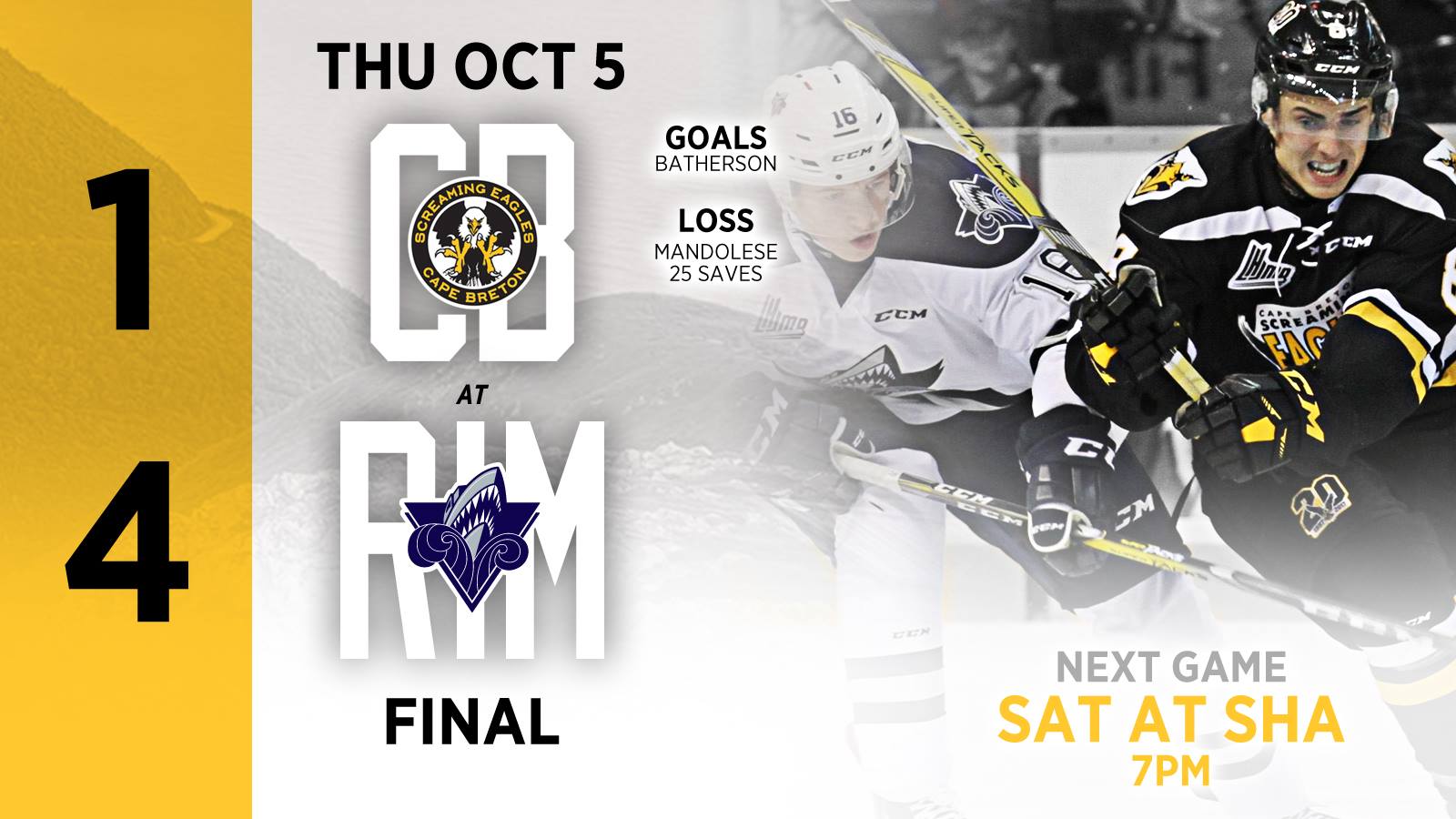 {"league":"lhjmq","site_api_key":"f322673b6bcae299","season":"","sponsor":false,"link":false,"days_ahead":"6","days_back":"2","team":"3","team_class":"lhjmq-cap","base_url":"https:\/\/chl.ca\/lhjmq-eagles","language":"en","view":"scorebar","scoreboard":[{"ID":"32447","SeasonID":"211","league_id":"1","game_number":"539","game_letter":"","game_type":"","quick_score":"0","Date":"2026-03-12","FloCoreEventId":"14326761","FloLiveEventId":"167168","GameDate":"Thu, Mar 12","GameDateISO8601":"2026-03-12T19:00:00-03:00","ScheduledTime":"19:00:00","ScheduledFormattedTime":"7:00 pm","Timezone":"Canada\/Atlantic","TicketUrl":"https:\/\/www.ticketmaster.ca\/moncton-wildcats-tickets\/artist\/891817?home_away=home","HomeID":"1","HomeCode":"Mon","HomeCity":"Moncton","HomeNickname":"Wildcats","HomeLongName":"Moncton, Wildcats","HomeDivision":"Eastern Conference","HomeGoals":"4","HomeAudioUrl":"https:\/\/inspire.fm\/","HomeVideoUrl":"","HomeWebcastUrl":"https:\/\/flosports.link\/40vqONJ","VisitorID":"3","VisitorCode":"Cap","VisitorCity":"Cape Breton","VisitorNickname":"Eagles","VisitorLongName":"Cape Breton, Eagles","VisitingDivision":"Eastern Conference","VisitorGoals":"2","VisitorAudioUrl":"https:\/\/cjcbradio.com","VisitorVideoUrl":"","VisitorWebcastUrl":"https:\/\/flosports.link\/4kMFDmb","Period":"3","PeriodNameShort":"3","PeriodNameLong":"3rd","GameClock":"00:00","GameSummaryUrl":"32447","HomeWins":"46","HomeRegulationLosses":"10","HomeOTLosses":"2","HomeShootoutLosses":"2","VisitorWins":"27","VisitorRegulationLosses":"22","VisitorOTLosses":"4","VisitorShootoutLosses":"9","GameStatus":"4","Intermission":"0","GameStatusString":"Final","GameStatusStringLong":"Final","Ord":"2026-03-12 18:00:00.000000","venue_name":"Avenir Centre","venue_location":"Moncton (NB)","league_name":"Ligue de hockey junior Maritimes Qu\u00e9bec","league_code":"lhjmq","TimezoneShort":"AT","HomeLogo":"https:\/\/assets.leaguestat.com\/lhjmq\/logos\/1.png","VisitorLogo":"https:\/\/assets.leaguestat.com\/lhjmq\/logos\/3.png","FloHockeyUrl":"https:\/\/flohockey.tv\/events\/14326761","combined_client_code":null},{"ID":"32452","SeasonID":"211","league_id":"1","game_number":"544","game_letter":"","game_type":"","quick_score":"0","Date":"2026-03-13","FloCoreEventId":"14326772","FloLiveEventId":"167174","GameDate":"Fri, Mar 13","GameDateISO8601":"2026-03-13T19:00:00-03:00","ScheduledTime":"19:00:00","ScheduledFormattedTime":"7:00 pm","Timezone":"Canada\/Atlantic","TicketUrl":"https:\/\/purchase.eastlinkcentrepei.com\/Events","HomeID":"7","HomeCode":"Cha","HomeCity":"Charlottetown","HomeNickname":"Islanders","HomeLongName":"Charlottetown, Islanders","HomeDivision":"Eastern Conference","HomeGoals":"2","HomeAudioUrl":"https:\/\/max931.ca","HomeVideoUrl":"","HomeWebcastUrl":"https:\/\/flosports.link\/40uGbWM","VisitorID":"3","VisitorCode":"Cap","VisitorCity":"Cape Breton","VisitorNickname":"Eagles","VisitorLongName":"Cape Breton, Eagles","VisitingDivision":"Eastern Conference","VisitorGoals":"1","VisitorAudioUrl":"https:\/\/cjcbradio.com","VisitorVideoUrl":"","VisitorWebcastUrl":"https:\/\/flosports.link\/4kMFDmb","Period":"4","PeriodNameShort":"OT1","PeriodNameLong":"1st OT","GameClock":"02:54","GameSummaryUrl":"32452","HomeWins":"32","HomeRegulationLosses":"21","HomeOTLosses":"2","HomeShootoutLosses":"6","VisitorWins":"27","VisitorRegulationLosses":"22","VisitorOTLosses":"4","VisitorShootoutLosses":"9","GameStatus":"4","Intermission":"0","GameStatusString":"Final","GameStatusStringLong":"Final 1st OT","Ord":"2026-03-13 18:00:00.000000","venue_name":"Eastlink Centre","venue_location":"Charlottetown PE","league_name":"Ligue de hockey junior Maritimes Qu\u00e9bec","league_code":"lhjmq","TimezoneShort":"AT","HomeLogo":"https:\/\/assets.leaguestat.com\/lhjmq\/logos\/7.png","VisitorLogo":"https:\/\/assets.leaguestat.com\/lhjmq\/logos\/3.png","FloHockeyUrl":"https:\/\/flohockey.tv\/events\/14326772","combined_client_code":null},{"ID":"32470","SeasonID":"211","league_id":"1","game_number":"562","game_letter":"","game_type":"","quick_score":"0","Date":"2026-03-20","FloCoreEventId":"14326821","FloLiveEventId":"167195","GameDate":"Fri, Mar 20","GameDateISO8601":"2026-03-20T19:00:00-03:00","ScheduledTime":"19:00:00","ScheduledFormattedTime":"7:00 pm","Timezone":"Canada\/Atlantic","TicketUrl":"https:\/\/www.ticketmaster.ca\/cape-breton-eagles-tickets\/artist\/891825","HomeID":"3","HomeCode":"Cap","HomeCity":"Cape Breton","HomeNickname":"Eagles","HomeLongName":"Cape Breton, Eagles","HomeDivision":"Eastern Conference","HomeGoals":"0","HomeAudioUrl":"https:\/\/cjcbradio.com","HomeVideoUrl":"","HomeWebcastUrl":"https:\/\/flosports.link\/4kMFDmb","VisitorID":"8","VisitorCode":"SNB","VisitorCity":"Saint John","VisitorNickname":"Sea Dogs","VisitorLongName":"Saint John, Sea Dogs","VisitingDivision":"Eastern Conference","VisitorGoals":"0","VisitorAudioUrl":"http:\/\/sjseadogs.link\/radio","VisitorVideoUrl":"","VisitorWebcastUrl":"https:\/\/flosports.link\/4o1am1P","Period":"1","PeriodNameShort":"1","PeriodNameLong":"1st","GameClock":"00:00","GameSummaryUrl":"32470","HomeWins":"27","HomeRegulationLosses":"22","HomeOTLosses":"4","HomeShootoutLosses":"9","VisitorWins":"22","VisitorRegulationLosses":"33","VisitorOTLosses":"5","VisitorShootoutLosses":"0","GameStatus":"1","Intermission":"0","GameStatusString":"7:00PM","GameStatusStringLong":"7:00 PM AT","Ord":"2026-03-20 18:00:00.000000","venue_name":"Centre 200","venue_location":"Sydney NS","league_name":"Ligue de hockey junior Maritimes Qu\u00e9bec","league_code":"lhjmq","TimezoneShort":"AT","HomeLogo":"https:\/\/assets.leaguestat.com\/lhjmq\/logos\/3.png","VisitorLogo":"https:\/\/assets.leaguestat.com\/lhjmq\/logos\/50x50\/8_211.png","FloHockeyUrl":"https:\/\/flohockey.tv\/events\/14326821","combined_client_code":null},{"ID":"32478","SeasonID":"211","league_id":"1","game_number":"570","game_letter":"","game_type":"","quick_score":"0","Date":"2026-03-21","FloCoreEventId":"14326835","FloLiveEventId":"167202","GameDat