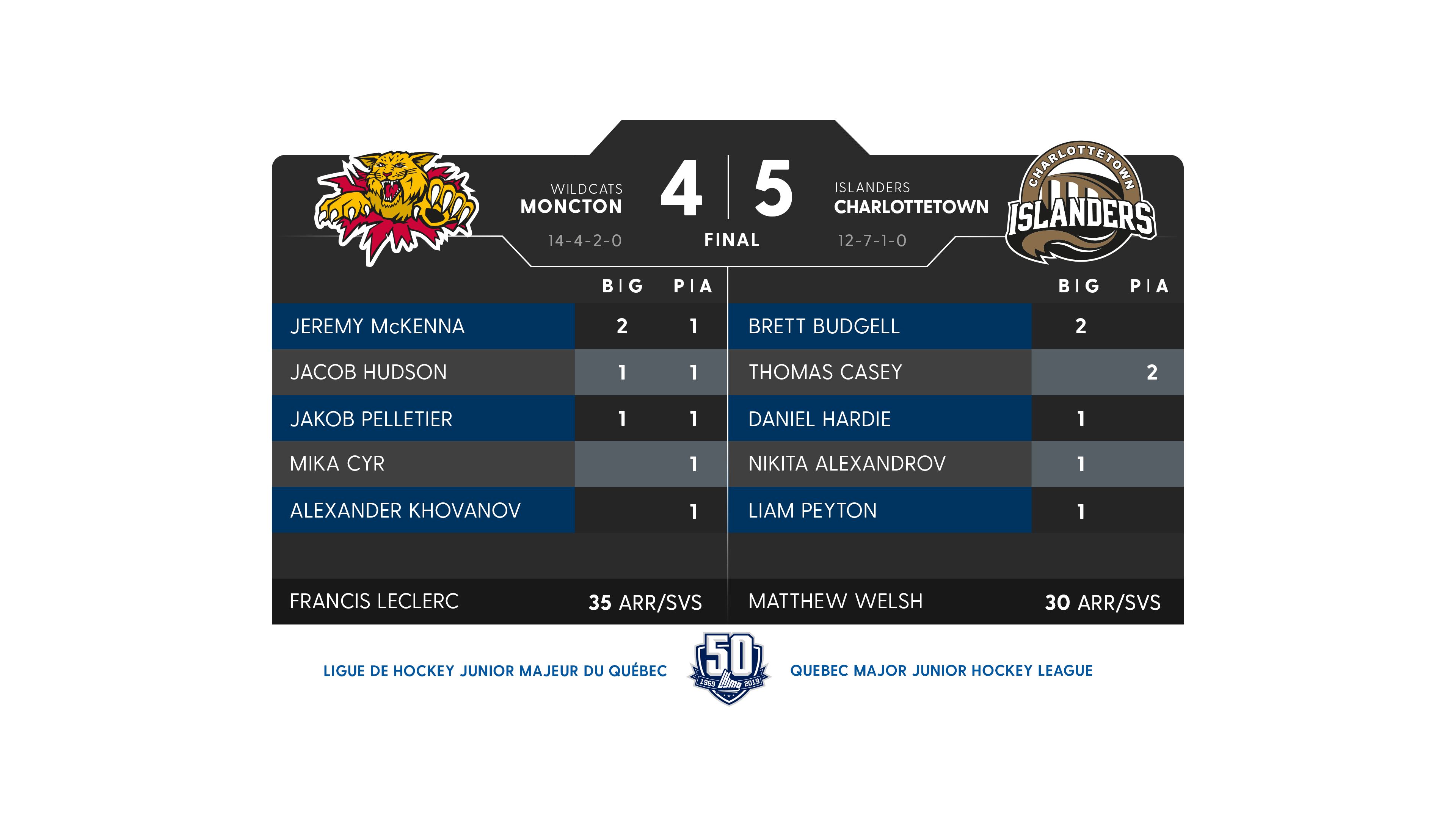 | Alexis Beaulieu | 7 | 7 | 14 | -1 |
