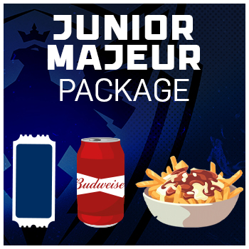 The Junior Majeur package includes: a ticket, a poutine, and a beer (Budweiser or Bud Light) per person.