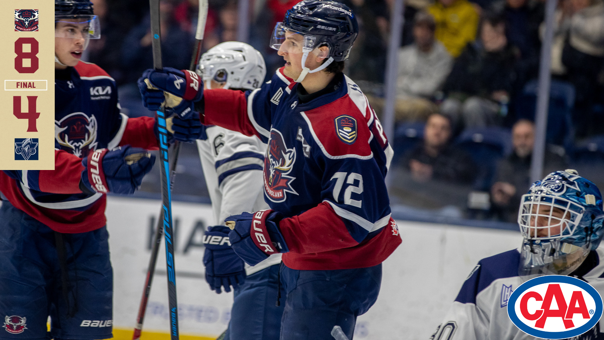 It was a defensive final period of play with both teams getting their chances but neither side was able to find the back of the net. That was until the final minute when Element hit the empty net to put a bow on the Titan’s first road victory over the season, 5-3 over the Drakkar. Element was named first star of the game while another former Drakkar Yan Aucoin picked up 3rd star honours.