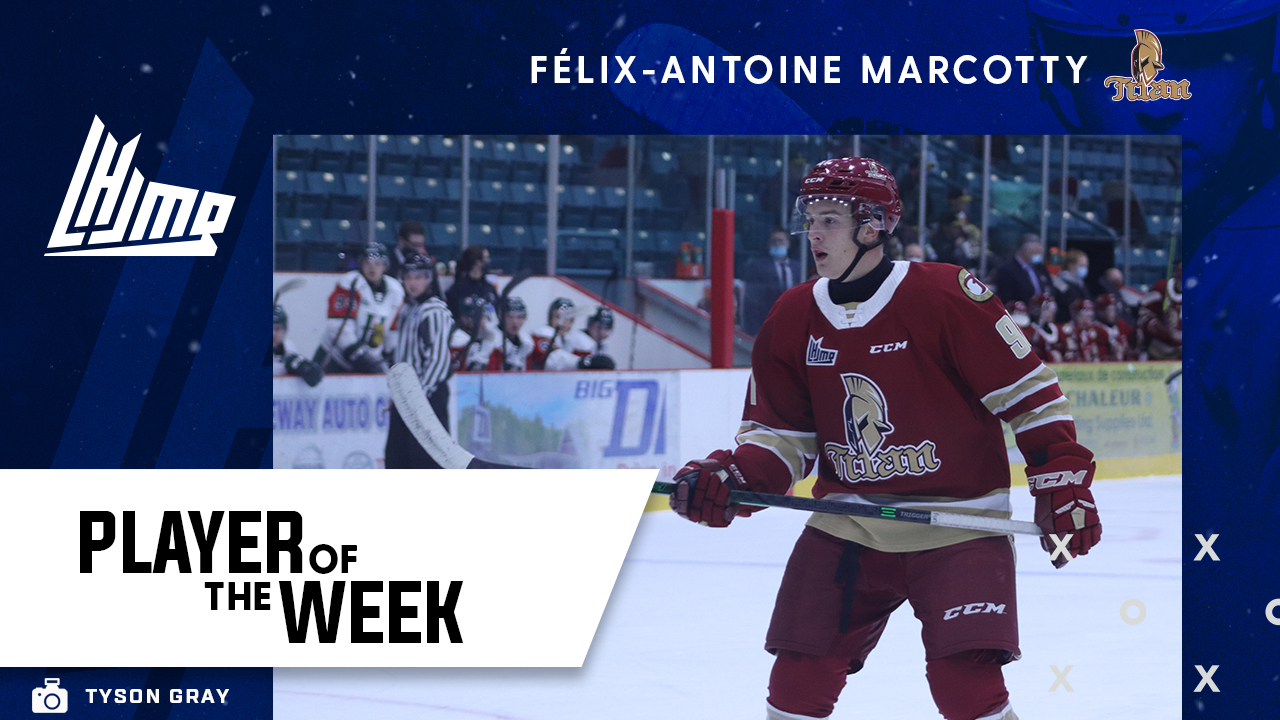 The latest QMJHL Player of the Week is Felix-Antoine Marcotty of the Acadie-Bathurst Titan. In a pair of home games against the Cape Breton Eagles, the overage winger from Saint-Jean-sur-Richelieu, Quebec scored once and added five assists as the Titan went 2-0.