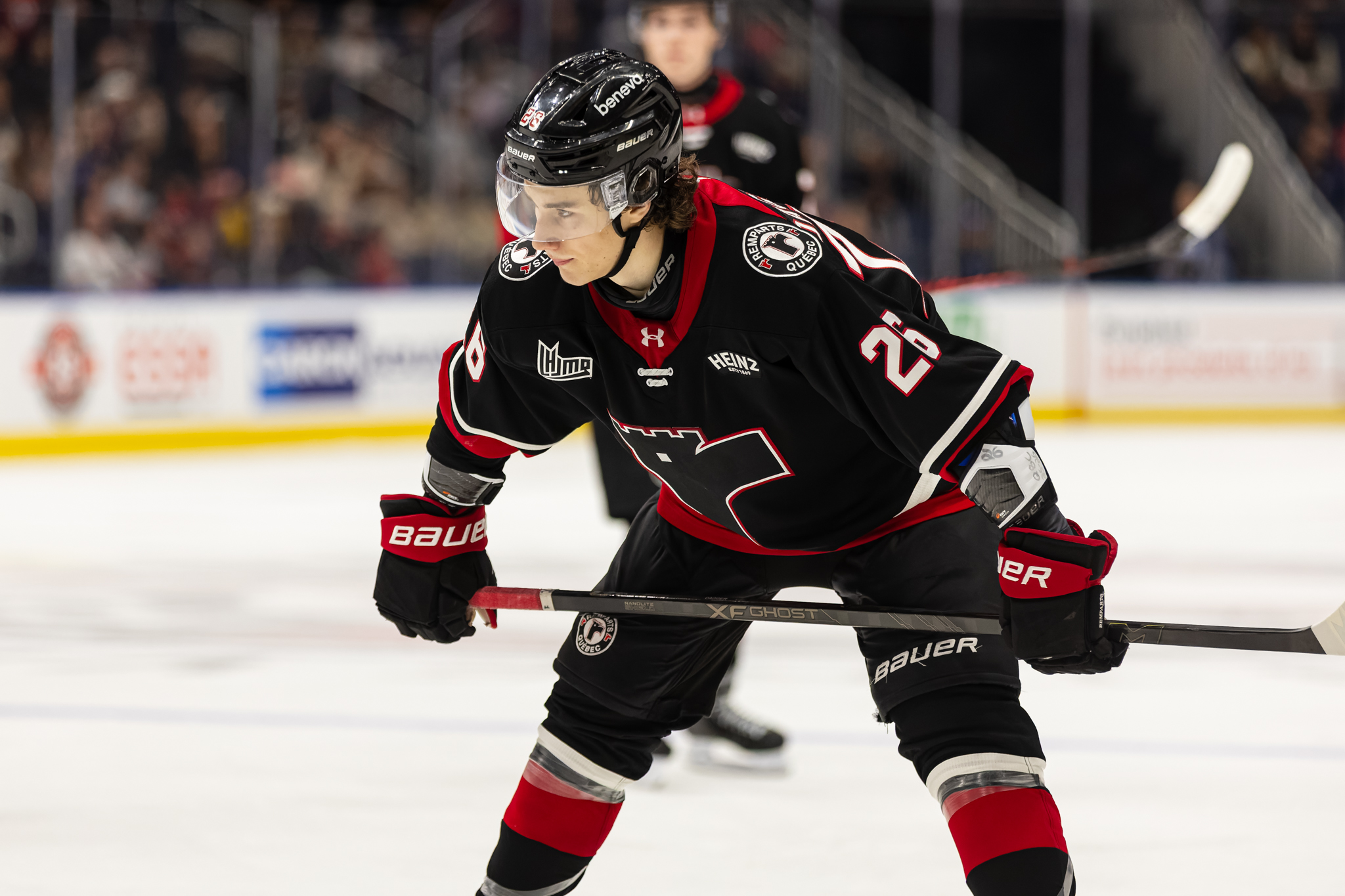 Les Remparts accueillaient à nouveau ce soir les Foreurs de Val-d’Or au Centre Vidéotron. Devant le filet Émile Beaunoyer (Foreurs)…