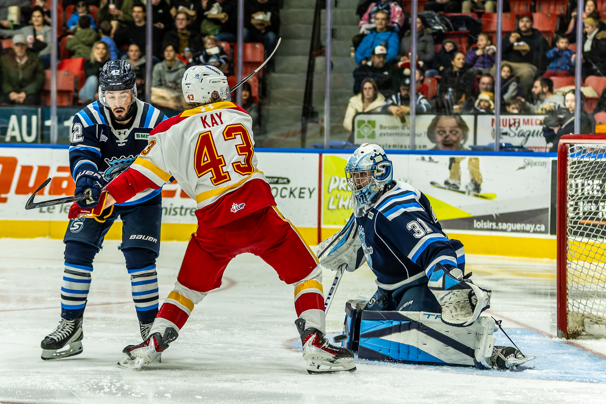 Les Saguenéens ont repris là où ils avaient laissé lors du premier vingt. Dès le début de la deuxième période, Nathan Lecompte a fait scintiller la lumière rouge, complétant ainsi son premier tour du chapeau dans la LHJMQ.