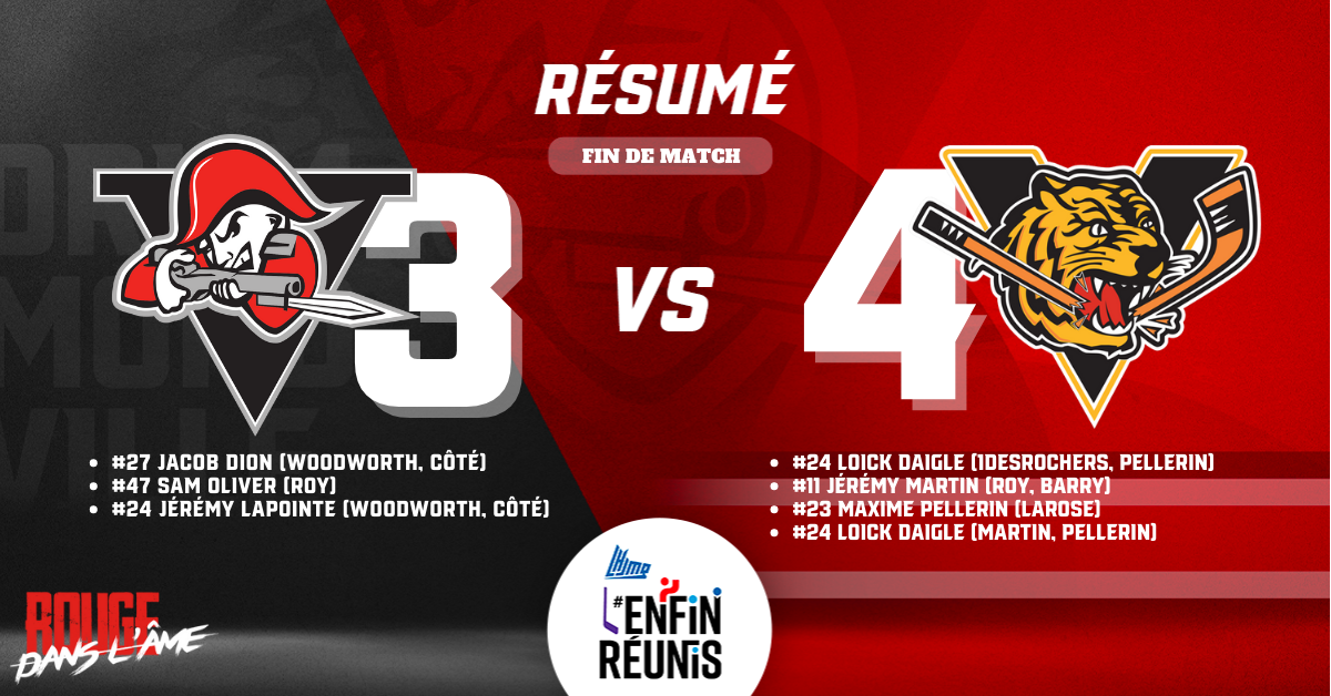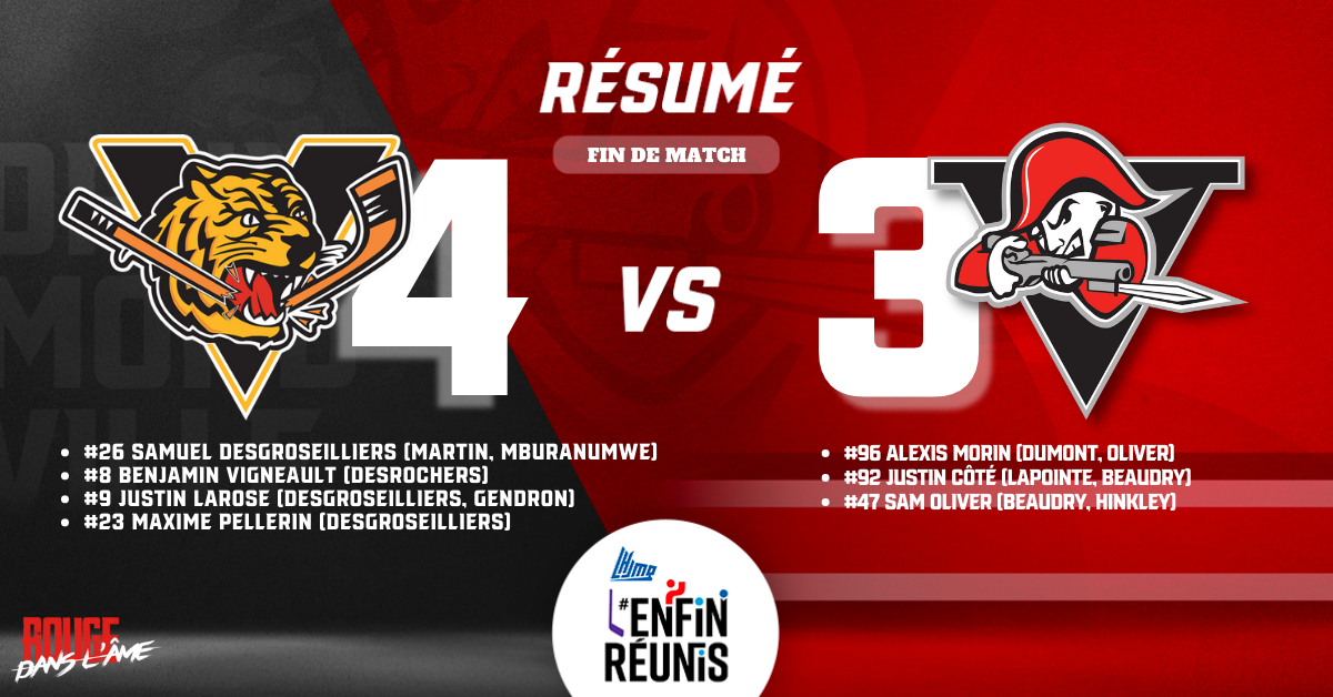 Résumé du match face aux Tigres de Victoriaville – 29 avril 2022