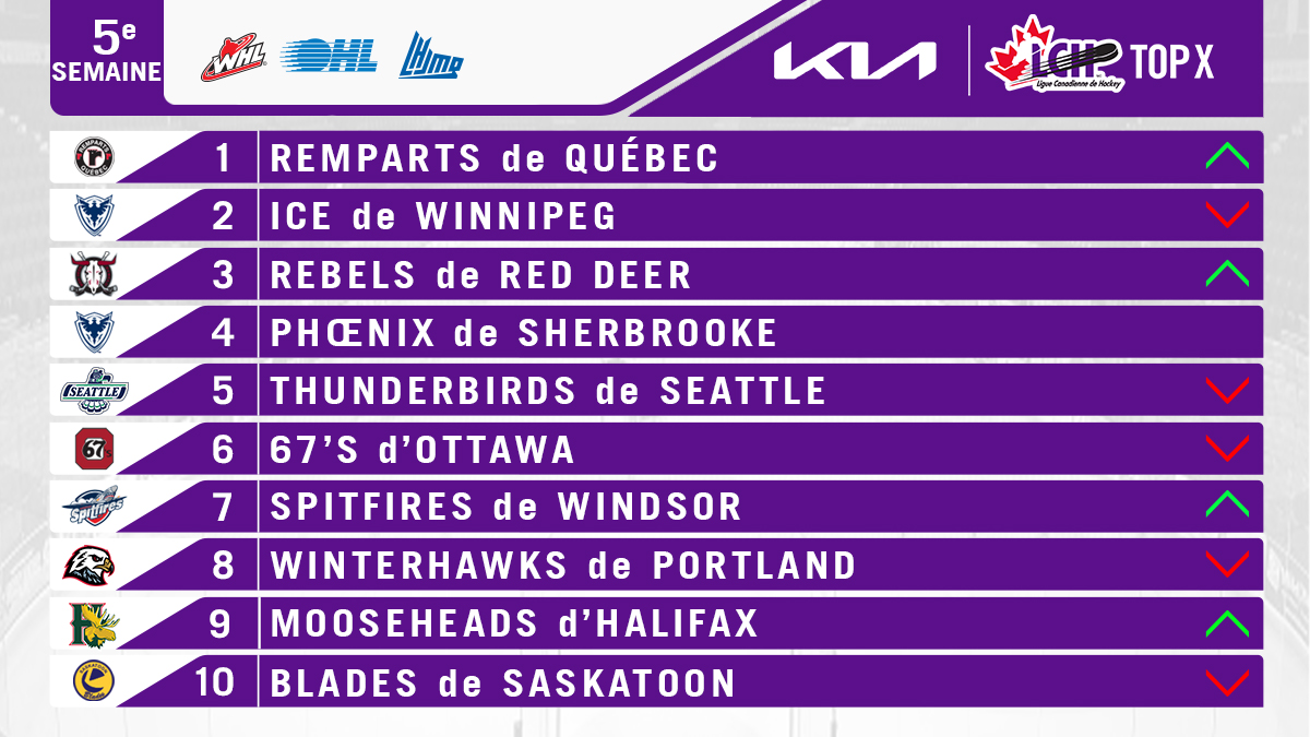 Classement du Top 10 Kia de la LCH : 5e semaine de 2022-2023