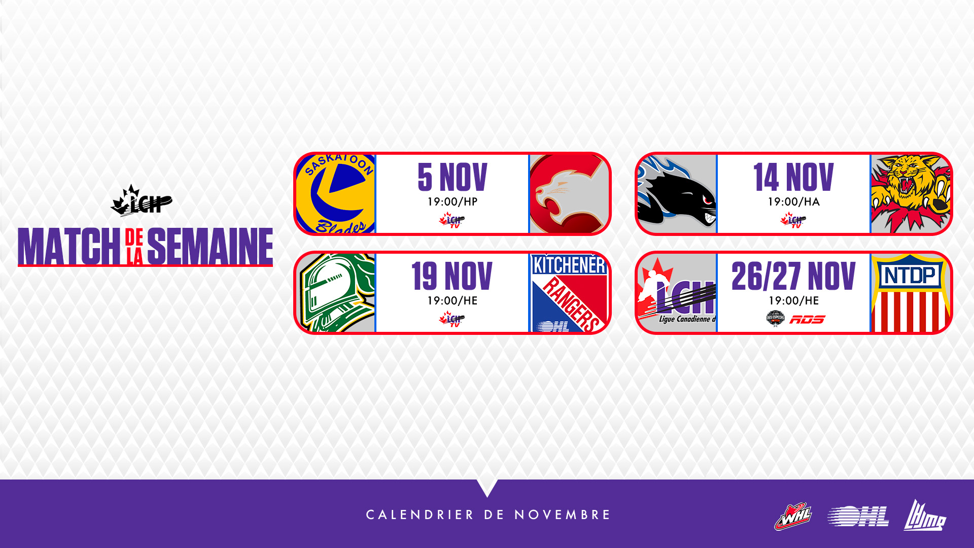 L’horaire des Matchs de la semaine sur LCH TV annoncé pour novembre