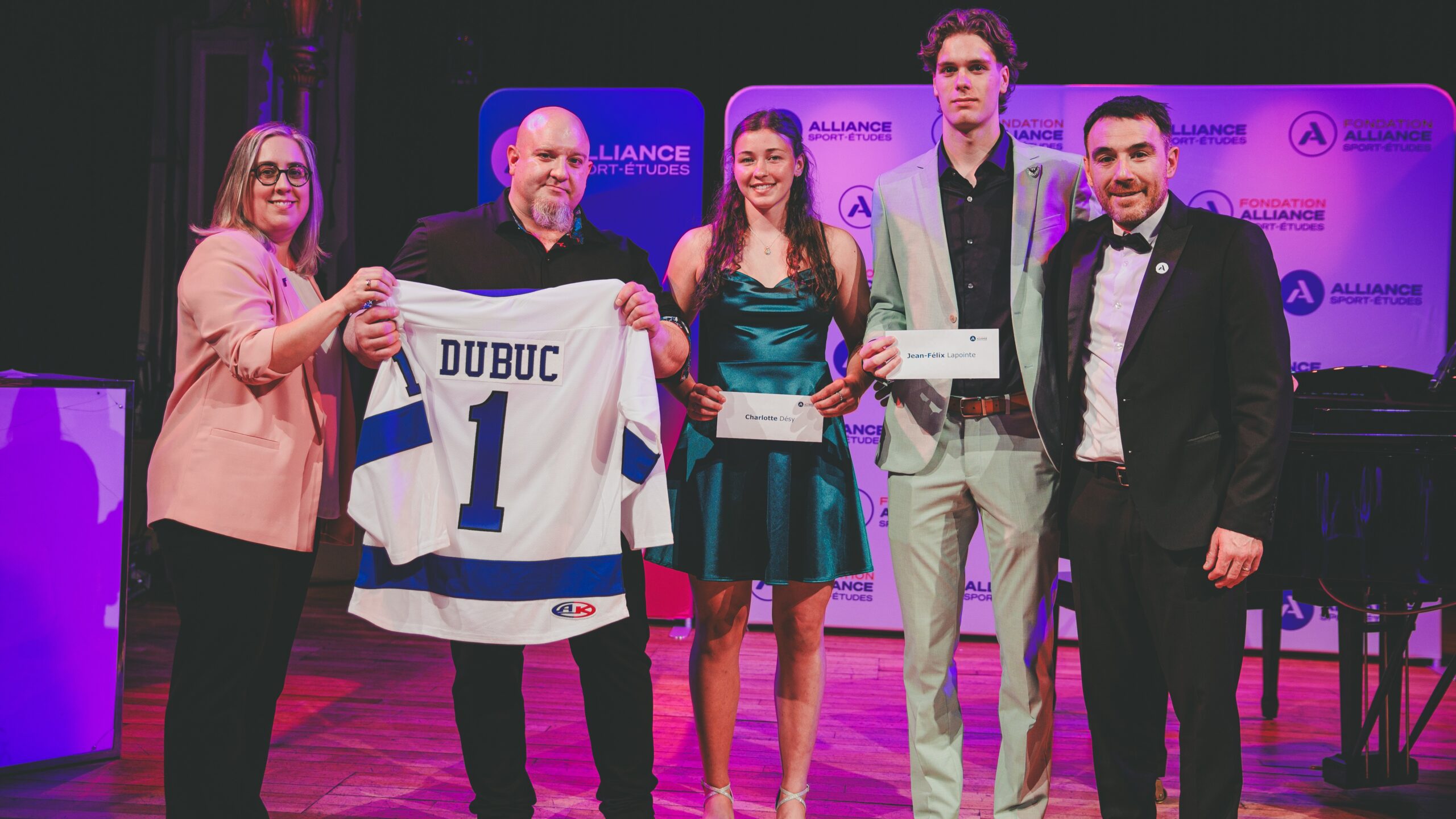 The first two Dominique-Dubuc scholarships were awarded during the Sport-Études Celebration on May 1 in the presence of Sébastien Fyfe, Director of the Alliance Sport-Études, Valérie Monette, Director of the Scholastic Program at the QMJHL, as well as Daniel Dubuc, Dominique’s brother.