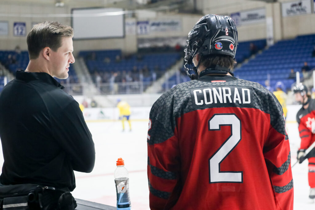 This whirlwind debut has led to another big step in Conrad’s young career; a spot on Team Canada Red at the 2023 World Under-17 Hockey Challenge, taking place in his home rink, Charlottetown’s Eastlink Center. Joining him on Team Red from the QMJHL are fellow blueliner Xavier Villeneuve (Blainville-Boisbriand) and forwards Shawn Carrier (Moncton), Nathan Lecompte (Chicoutimi) and Liam Kilfoil (Halifax).