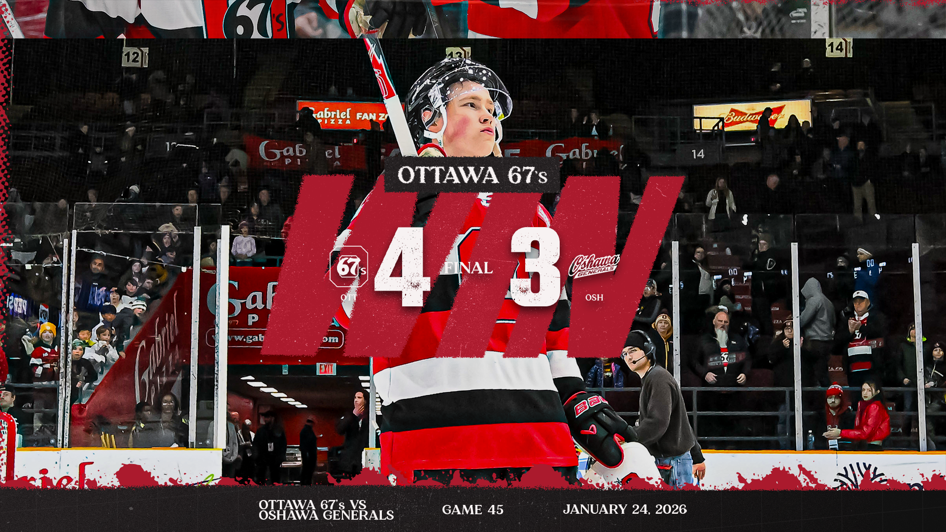 {"league":"ohl","site_api_key":"2976319eb44abe94","season":"","sponsor":false,"link":false,"days_ahead":"6","days_back":"3","team":"5","team_class":"ohl-ott","base_url":"https:\/\/chl.ca\/ohl-67s","language":"en","view":"scorebar","scoreboard":[{"ID":"28567","SeasonID":"83","league_id":"1","game_number":"418","game_letter":"","game_type":"","quick_score":"0","Date":"2026-01-16","FloCoreEventId":"14477763","FloLiveEventId":"194678","GameDate":"Fri, Jan 16","GameDateISO8601":"2026-01-16T19:00:00-05:00","ScheduledTime":"19:00:00","ScheduledFormattedTime":"7:00 pm","Timezone":"Canada\/Eastern","TicketUrl":"","HomeID":"5","HomeCode":"OTT","HomeCity":"Ottawa","HomeNickname":"67's","HomeLongName":"Ottawa 67's","HomeDivision":"East Division","HomeGoals":"2","HomeAudioUrl":"https:\/\/www.iheart.com\/live\/tsn-1200-7503\/","HomeVideoUrl":"","HomeWebcastUrl":"https:\/\/flosports.link\/3UB9MKQ","VisitorID":"64","VisitorCode":"GAT","VisitorCity":"Gatineau","VisitorNickname":"Olympiques","VisitorLongName":"Gatineau Olympiques","VisitingDivision":"East Division","VisitorGoals":"1","VisitorAudioUrl":"","VisitorVideoUrl":"","VisitorWebcastUrl":"","Period":"3","PeriodNameShort":"3","PeriodNameLong":"3rd","GameClock":"00:00","GameSummaryUrl":"28567","HomeWins":"33","HomeRegulationLosses":"9","HomeOTLosses":"1","HomeShootoutLosses":"2","VisitorWins":"0","VisitorRegulationLosses":"2","VisitorOTLosses":"0","VisitorShootoutLosses":"0","GameStatus":"4","Intermission":"0","GameStatusString":"Final","GameStatusStringLong":"Final","Ord":"2026-01-16 19:00:00.000000","venue_name":"TD Place","venue_location":"Ottawa, ON","league_name":"Ontario Hockey League","league_code":"ohl","TimezoneShort":"EST","HomeLogo":"https:\/\/assets.leaguestat.com\/ohl\/logos\/5.png","VisitorLogo":"https:\/\/assets.leaguestat.com\/ohl\/logos\/50x50\/64.png","FloHockeyUrl":"https:\/\/flohockey.tv\/events\/14477763","combined_client_code":null},{"ID":"28574","SeasonID":"83","league_id":"1","game_number":"425","game_letter":"","game_type":"","quick_score":"0","Date":"2026-01-17","FloCoreEventId":"14835017","FloLiveEventId":"0","GameDate":"Sat, Jan 17","GameDateISO8601":"2026-01-17T16:00:00-05:00","ScheduledTime":"16:00:00","ScheduledFormattedTime":"4:00 pm","Timezone":"Canada\/Eastern","TicketUrl":"","HomeID":"64","HomeCode":"GAT","HomeCity":"Gatineau","HomeNickname":"Olympiques","HomeLongName":"Gatineau Olympiques","HomeDivision":"East Division","HomeGoals":"3","HomeAudioUrl":"","HomeVideoUrl":"","HomeWebcastUrl":"","VisitorID":"5","VisitorCode":"OTT","VisitorCity":"Ottawa","VisitorNickname":"67's","VisitorLongName":"Ottawa 67's","VisitingDivision":"East Division","VisitorGoals":"5","VisitorAudioUrl":"https:\/\/www.iheart.com\/live\/tsn-1200-7503\/","VisitorVideoUrl":"","VisitorWebcastUrl":"https:\/\/flosports.link\/3UB9MKQ","Period":"3","PeriodNameShort":"3","PeriodNameLong":"3rd","GameClock":"00:00","GameSummaryUrl":"28574","HomeWins":"0","HomeRegulationLosses":"2","HomeOTLosses":"0","HomeShootoutLosses":"0","VisitorWins":"33","VisitorRegulationLosses":"9","VisitorOTLosses":"1","VisitorShootoutLosses":"2","GameStatus":"4","Intermission":"0","GameStatusString":"Final","GameStatusStringLong":"Final","Ord":"2026-01-17 16:00:00.000000","venue_name":"Slush Puppie Centre","venue_location":"Gatineau, PQ","league_name":"Ontario Hockey League","league_code":"ohl","TimezoneShort":"EST","HomeLogo":"https:\/\/assets.leaguestat.com\/ohl\/logos\/50x50\/64.png","VisitorLogo":"https:\/\/assets.leaguestat.com\/ohl\/logos\/5.png","FloHockeyUrl":"https:\/\/flohockey.tv\/events\/14835017","combined_client_code":null},{"ID":"28581","SeasonID":"83","league_id":"1","game_number":"432","game_letter":"","game_type":"","quick_score":"0","Date":"2026-01-18","FloCoreEventId":"14477804","FloLiveEventId":"194698","GameDate":"Sun, Jan 18","GameDateISO8601":"2026-01-18T15:00:00-05:00","ScheduledTime":"15:00:00","ScheduledFormattedTime":"3:00 pm","Timezone":"Canada\/Eastern","TicketUrl":"","HomeID":"5","HomeCode":"OTT","HomeCity":"Ottawa","HomeNickname":"67's","HomeLongName":"Ottawa 67's","HomeDivision":"East Division","HomeGoals":"5","HomeAudioUrl":"https:\/\/www.iheart.com\/live\/tsn-1200-7503\/","HomeVideoUrl":"","HomeWebcastUrl":"https:\/\/flosports.link\/3UB9MKQ","VisitorID":"6","VisitorCode":"PBO","VisitorCity":"Peterborough","VisitorNickname":"Petes","VisitorLongName":"Peterborough Petes","VisitingDivision":"East Division","VisitorGoals":"2","VisitorAudioUrl":"https:\/\/player1.radioplace.co\/player\/popup\/cjmb-fm\/","VisitorVideoUrl":"","VisitorWebcastUrl":"https:\/\/flosports.link\/4mPIGLN","Period":"3","PeriodNameShort":"3","PeriodNameLong":"3rd","GameClock":"00:00","GameSummaryUrl":"28581","HomeWins":"33","HomeRegulationLosses":"9","HomeOTLosses":"1","HomeShootoutLosses":"2","VisitorWins":"25","VisitorRegulationLosses":"17","VisitorOTLosses":"1","VisitorShootoutLosses":"2","GameStatus":"4","Intermission":"0","GameStatusString":"Final","GameStatusStringLong":"Final","Ord":"2026-01-18 15:00:00.000000","venue_name":"TD Place","venue_location":"Ottawa, ON","league_name":"Ontario Hockey League","league_code":"ohl","TimezoneShort":"EST","HomeLogo":"https:\/\/assets.leaguestat.com\/ohl\/logos\/5.png","VisitorLogo":"https:\/\/assets.leaguestat.com\/ohl\/logos\/6.png","FloHockeyUrl":"https:\/\/flohockey.tv\/events\/14477804","combined_client_code":null},{"ID":"28598","SeasonID":"83","league_id":"1","game_number":"449","game_letter":"","game_type":"","quick_score":"0","Date":"2026-01-24","FloCoreEventId":"14477831","FloLiveEventId":"194711","GameDate":"Sat, Jan 24","GameDateISO8601":"2026-01-24T15:00:00-05:00","ScheduledTime":"15:00:00","ScheduledFormattedTime":"3:00 pm","Timezone":"Canada\/Eastern","TicketUrl":"","HomeID":"5","HomeCode":"OTT","HomeCity":"Ottawa","HomeNickname":"67's","HomeLongName":"Ottawa 67's","HomeDivision":"East Division","HomeGoals":"4","HomeAudioUrl":"https:\/\/www.iheart.com\/live\/tsn-1200-7503\/","HomeVideoUrl":"","HomeWebcastUrl":"https:\/\/