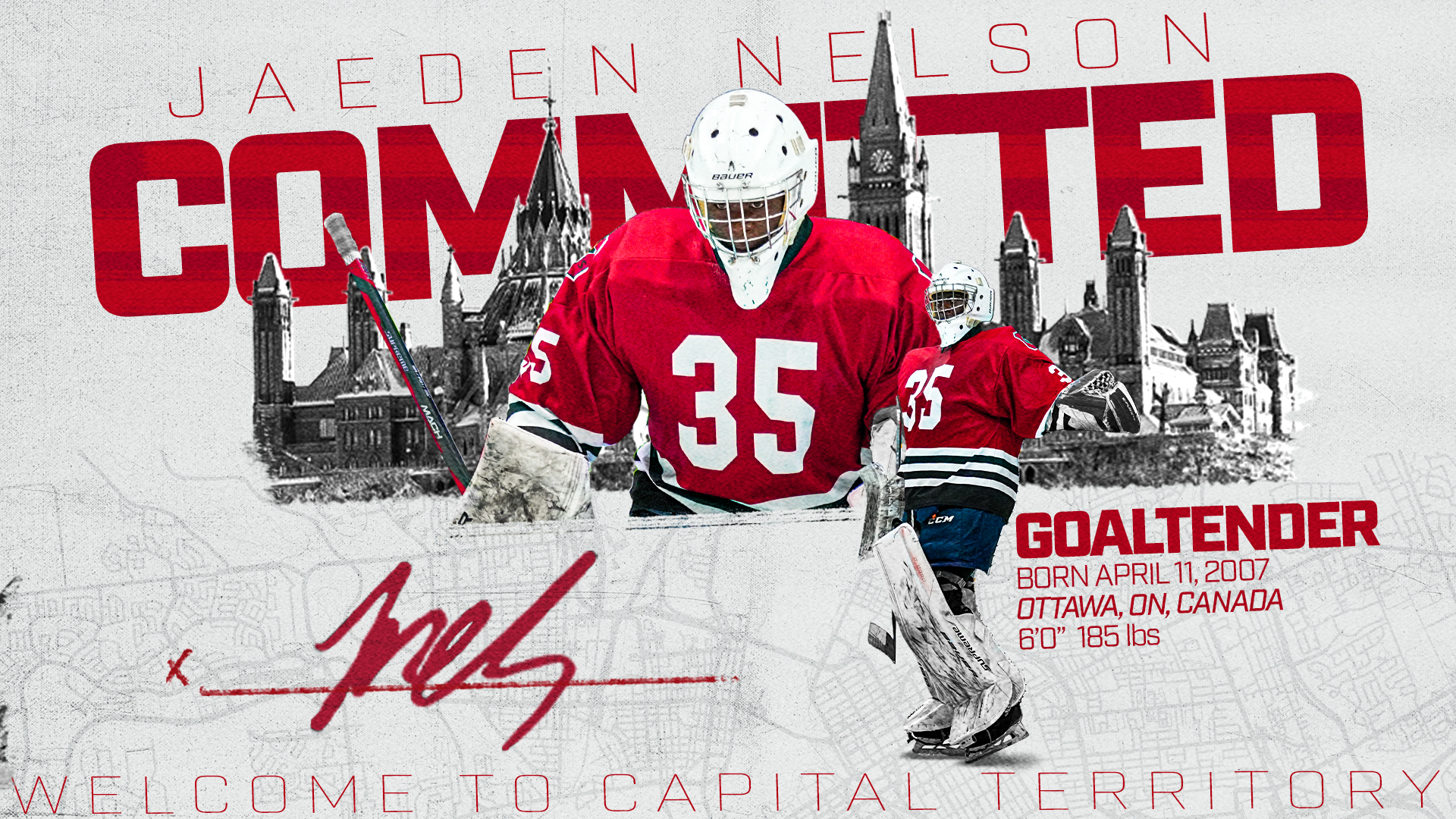 VILLE D’ACCUEIL : Ottawa, ON | ÉQUIPE PREVUE : Navan Grads (CCHL) | ATTRAPE : L