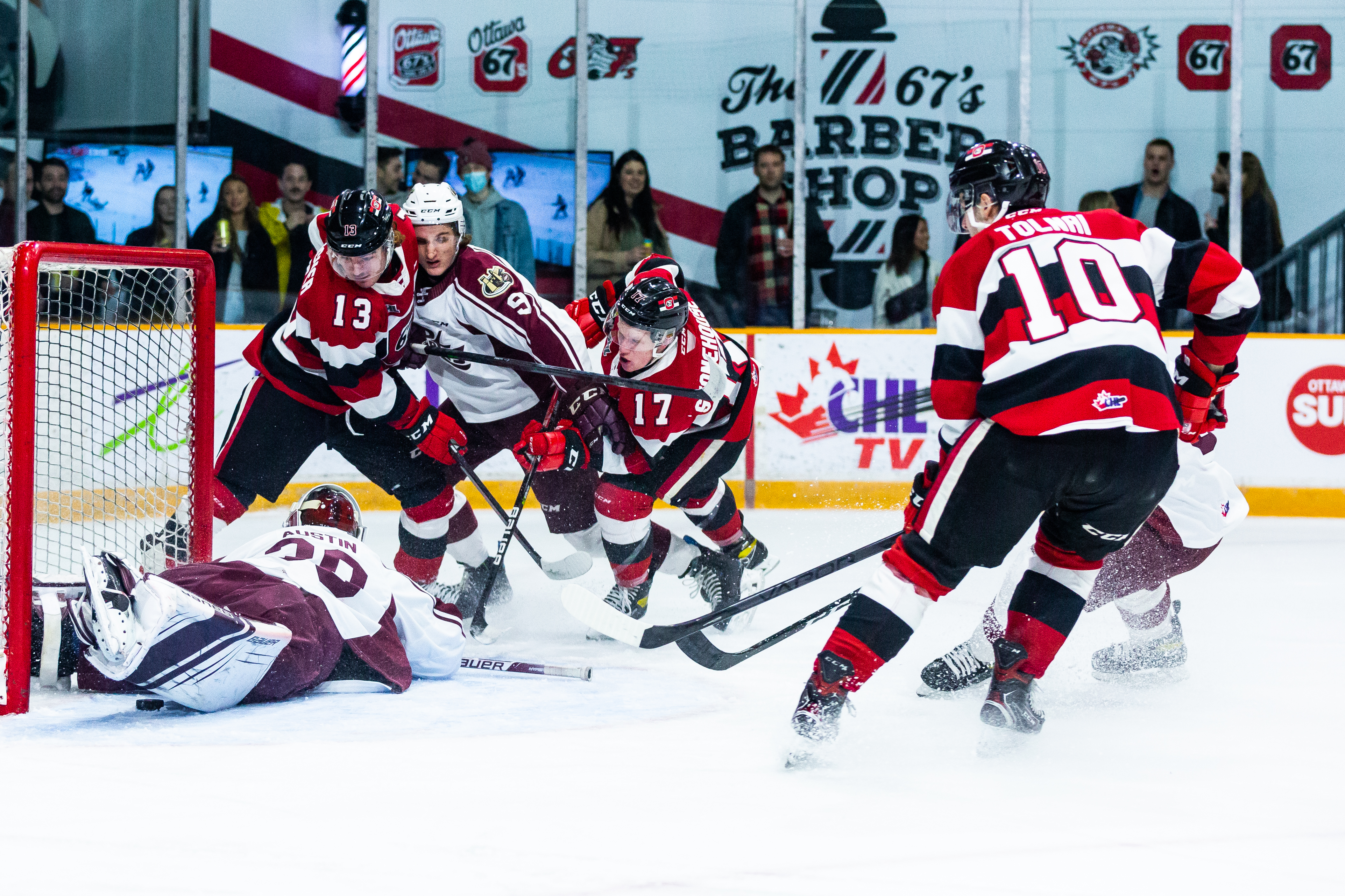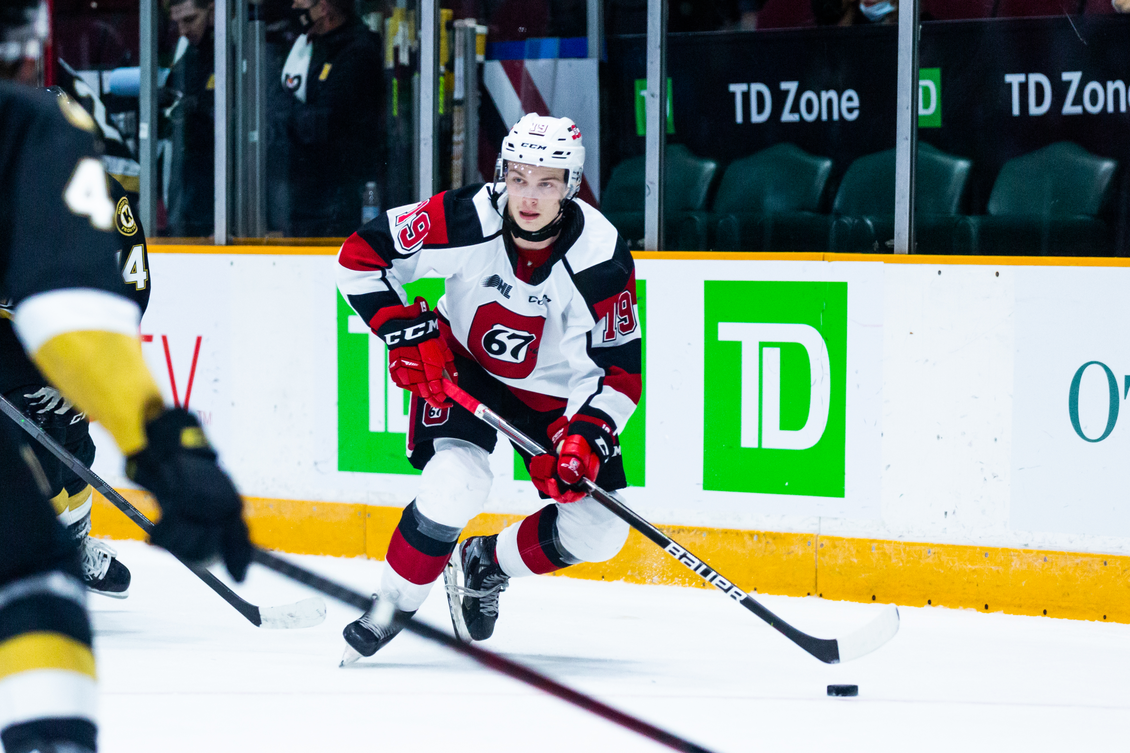 OTTAWA, ONTARIO, CANADA - October 17: Ontario Hockey League (OHL) regular season action between the Sudbury Wolves and Ottawa 67's on October 17, 2021 at The Arena at TD Place in Ottawa, Ontario. (Photo by Jon Halpenny / Ottawa 67's)
