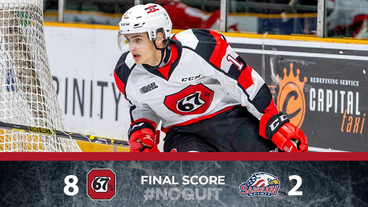 {"league":"ohl","site_api_key":"2976319eb44abe94","season":"","sponsor":false,"link":false,"days_ahead":"6","days_back":"3","team":"5","team_class":"ohl-ott","base_url":"https:\/\/chl.ca\/ohl-67s","language":"en","view":"scorebar","scoreboard":[{"ID":"28581","SeasonID":"83","league_id":"1","game_number":"432","game_letter":"","game_type":"","quick_score":"0","Date":"2026-01-18","FloCoreEventId":"14477804","FloLiveEventId":"194698","GameDate":"Sun, Jan 18","GameDateISO8601":"2026-01-18T15:00:00-05:00","ScheduledTime":"15:00:00","ScheduledFormattedTime":"3:00 pm","Timezone":"Canada\/Eastern","TicketUrl":"","HomeID":"5","HomeCode":"OTT","HomeCity":"Ottawa","HomeNickname":"67's","HomeLongName":"Ottawa 67's","HomeDivision":"East Division","HomeGoals":"5","HomeAudioUrl":"https:\/\/www.iheart.com\/live\/tsn-1200-7503\/","HomeVideoUrl":"","HomeWebcastUrl":"https:\/\/flosports.link\/3UB9MKQ","VisitorID":"6","VisitorCode":"PBO","VisitorCity":"Peterborough","VisitorNickname":"Petes","VisitorLongName":"Peterborough Petes","VisitingDivision":"East Division","VisitorGoals":"2","VisitorAudioUrl":"https:\/\/player1.radioplace.co\/player\/popup\/cjmb-fm\/","VisitorVideoUrl":"","VisitorWebcastUrl":"https:\/\/flosports.link\/4mPIGLN","Period":"3","PeriodNameShort":"3","PeriodNameLong":"3rd","GameClock":"00:00","GameSummaryUrl":"28581","HomeWins":"34","HomeRegulationLosses":"9","HomeOTLosses":"1","HomeShootoutLosses":"2","VisitorWins":"26","VisitorRegulationLosses":"18","VisitorOTLosses":"1","VisitorShootoutLosses":"2","GameStatus":"4","Intermission":"0","GameStatusString":"Final","GameStatusStringLong":"Final","Ord":"2026-01-18 15:00:00.000000","venue_name":"TD Place","venue_location":"Ottawa, ON","league_name":"Ontario Hockey League","league_code":"ohl","TimezoneShort":"EST","HomeLogo":"https:\/\/assets.leaguestat.com\/ohl\/logos\/5.png","VisitorLogo":"https:\/\/assets.leaguestat.com\/ohl\/logos\/6.png","FloHockeyUrl":"https:\/\/flohockey.tv\/events\/14477804","combined_client_code":null},{"ID":"28598","SeasonID":"83","league_id":"1","game_number":"449","game_letter":"","game_type":"","quick_score":"0","Date":"2026-01-24","FloCoreEventId":"14477831","FloLiveEventId":"194711","GameDate":"Sat, Jan 24","GameDateISO8601":"2026-01-24T15:00:00-05:00","ScheduledTime":"15:00:00","ScheduledFormattedTime":"3:00 pm","Timezone":"Canada\/Eastern","TicketUrl":"","HomeID":"5","HomeCode":"OTT","HomeCity":"Ottawa","HomeNickname":"67's","HomeLongName":"Ottawa 67's","HomeDivision":"East Division","HomeGoals":"4","HomeAudioUrl":"https:\/\/www.iheart.com\/live\/tsn-1200-7503\/","HomeVideoUrl":"","HomeWebcastUrl":"https:\/\/flosports.link\/3UB9MKQ","VisitorID":"4","VisitorCode":"OSH","VisitorCity":"Oshawa","VisitorNickname":"Generals","VisitorLongName":"Oshawa Generals","VisitingDivision":"East Division","VisitorGoals":"3","VisitorAudioUrl":"http:\/\/www.mixlr.com\/oshawagenerals","VisitorVideoUrl":"","VisitorWebcastUrl":"https:\/\/flosports.link\/41PjIEe","Period":"3","PeriodNameShort":"3","PeriodNameLong":"3rd","GameClock":"00:00","GameSummaryUrl":"28598","HomeWins":"34","HomeRegulationLosses":"9","HomeOTLosses":"1","HomeShootoutLosses":"2","VisitorWins":"10","VisitorRegulationLosses":"33","VisitorOTLosses":"1","VisitorShootoutLosses":"1","GameStatus":"4","Intermission":"0","GameStatusString":"Final","GameStatusStringLong":"Final","Ord":"2026-01-24 15:00:00.000000","venue_name":"TD Place","venue_location":"Ottawa, ON","league_name":"Ontario Hockey League","league_code":"ohl","TimezoneShort":"EST","HomeLogo":"https:\/\/assets.leaguestat.com\/ohl\/logos\/5.png","VisitorLogo":"https:\/\/assets.leaguestat.com\/ohl\/logos\/4.png","FloHockeyUrl":"https:\/\/flohockey.tv\/events\/14477831","combined_client_code":null},{"ID":"28606","SeasonID":"83","league_id":"1","game_number":"457","game_letter":"","game_type":"","quick_score":"0","Date":"2026-01-25","FloCoreEventId":"14477855","FloLiveEventId":"194723","GameDate":"Sun, Jan 25","GameDateISO8601":"2026-01-25T15:00:00-05:00","ScheduledTime":"15:00:00","ScheduledFormattedTime":"3:00 pm","Timezone":"Canada\/Eastern","TicketUrl":"","HomeID":"5","HomeCode":"OTT","HomeCity":"Ottawa","HomeNickname":"67's","HomeLongName":"Ottawa 67's","HomeDivision":"East Division","HomeGoals":"6","HomeAudioUrl":"https:\/\/www.iheart.com\/live\/tsn-1200-7503\/","HomeVideoUrl":"","HomeWebcastUrl":"https:\/\/flosports.link\/3UB9MKQ","VisitorID":"34","VisitorCode":"SAG","VisitorCity":"Saginaw","VisitorNickname":"Spirit","VisitorLongName":"Saginaw Spirit","VisitingDivision":"West Division","VisitorGoals":"0","VisitorAudioUrl":"https:\/\/www.alphamediaplayer.com\/wsgwsports","VisitorVideoUrl":"","VisitorWebcastUrl":"https:\/\/flosports.link\/4mp2d6j","Period":"3","PeriodNameShort":"3","PeriodNameLong":"3rd","GameClock":"00:00","GameSummaryUrl":"28606","HomeWins":"34","HomeRegulationLosses":"9","HomeOTLosses":"1","HomeShootoutLosses":"2","VisitorWins":"17","VisitorRegulationLosses":"22","VisitorOTLosses":"3","VisitorShootoutLosses":"4","GameStatus":"4","Intermission":"0","GameStatusString":"Final","GameStatusStringLong":"Final","Ord":"2026-01-25 15:00:00.000000","venue_name":"TD Place","venue_location":"Ottawa, ON","league_name":"Ontario Hockey League","league_code":"ohl","TimezoneShort":"EST","HomeLogo":"https:\/\/assets.leaguestat.com\/ohl\/logos\/5.png","VisitorLogo":"https:\/\/assets.leaguestat.com\/ohl\/logos\/34.png","FloHockeyUrl":"https:\/\/flohockey.tv\/events\/14477855","combined_client_code":null},{"ID":"28622","SeasonID":"83","league_id":"1","game_number":"473","game_letter":"","game_type":"","quick_score":"0","Date":"2026-01-30","FloCoreEventId":"14477873","FloLiveEventId":"194732","GameDate":"Fri, Jan 30","GameDateISO8601":"2026-01-30T19:00:00-05:00","ScheduledTime":"19:00:00","ScheduledFormattedTime":"7:00 pm","Timezone":"Canada\/Eastern","TicketUrl":"","HomeID":"5","HomeCode":"OTT","HomeCity":"Ottawa","HomeNickname":"67's","HomeLongName":"Ottawa 67's","HomeDivision":"East Division","HomeGoals":"0"