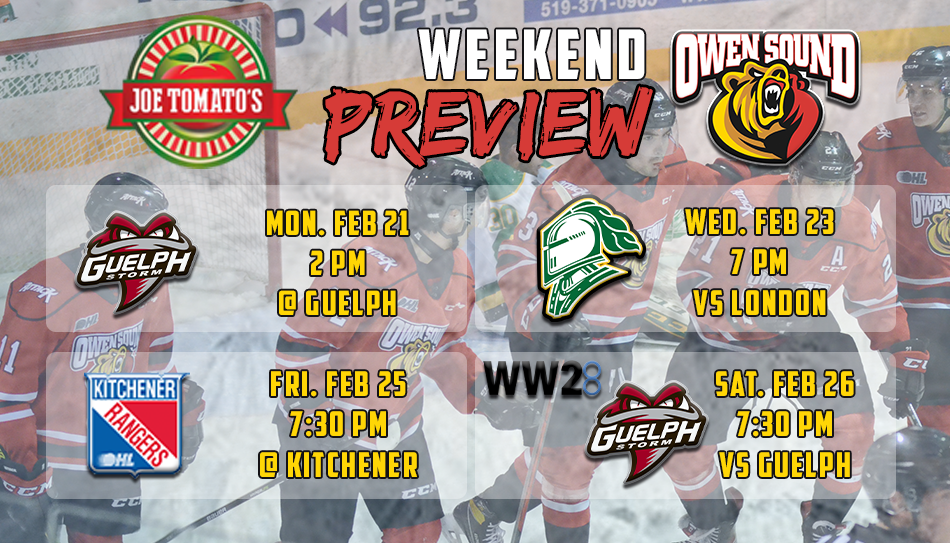 The Attack will hope that another visit to Guelph will help turn their fortunes around, as the rivals clash Monday afternoon for a Family Day matinee affair. The game will available for free viewing on CHL TV and Rogers TV Grey County, as both the Attack and Storm try to get some positives going in the final week of the month.