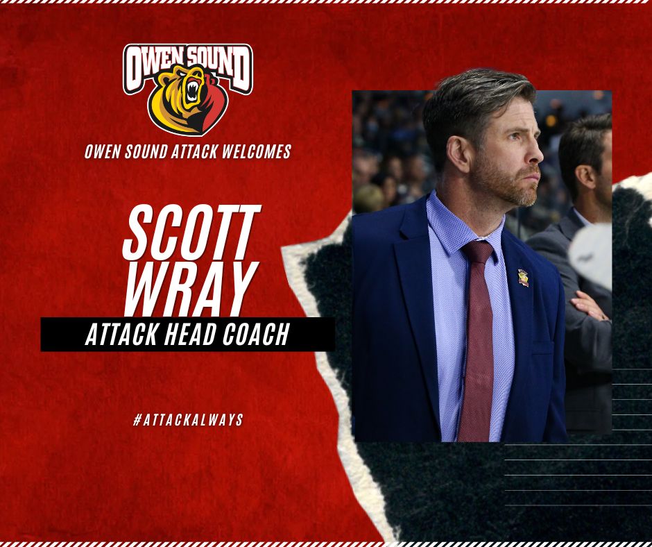 “This is going to be a great fit, and it will be up to the two of us to put together the best staff we have ever had. After going to the conference finals, the last three seasons and being a major part of that coaching staff, I feel it’s only fitting he gets an opportunity to run his own bench and be a head coach in the OHL” added DeGray when asked about Wray’s experience. “I am extremely happy to provide him the opportunity to be the next coach of the Owen Sound Attack. We would like to welcome Scott and his wife Shanna and their family to Owen Sound.”