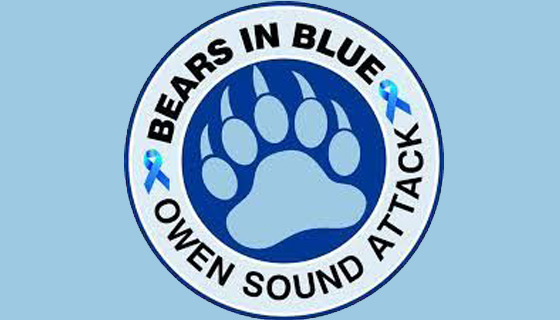 The Owen Sound Attack, in partnership with the Canadian Cancer Society is pleased to announce that the 2nd annual Bears in Blue raised an impressive $31,000 for prostate cancer research. Since 2008 The Canadian Cancer Society has been partnering with the Attack on initiatives to raise awareness for cancer with a grand total of $185,923.95 being raised for various cancer programs, services and research.