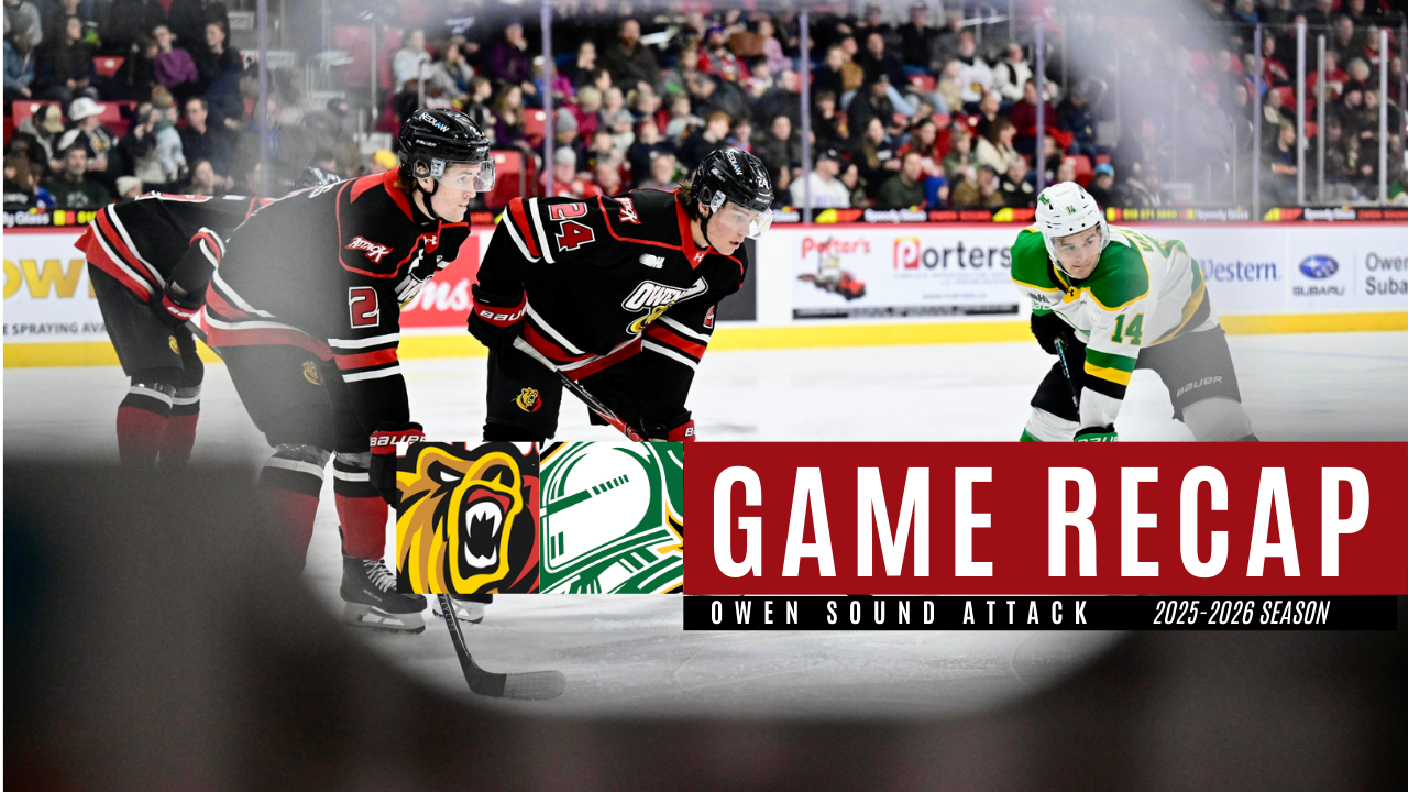 {"league":"ohl","site_api_key":"2976319eb44abe94","season":"","sponsor":false,"link":false,"days_ahead":"7","days_back":"1","team":"11","team_class":"ohl-os","base_url":"https:\/\/chl.ca\/ohl-attack","language":"en","view":"scorebar","scoreboard":[{"ID":"28549","SeasonID":"83","league_id":"1","game_number":"400","game_letter":"","game_type":"","quick_score":"0","Date":"2026-01-10","FloCoreEventId":"14477735","FloLiveEventId":"194664","GameDate":"Sat, Jan 10","GameDateISO8601":"2026-01-10T19:00:00-05:00","ScheduledTime":"19:00:00","ScheduledFormattedTime":"7:00 pm","Timezone":"Canada\/Eastern","TicketUrl":"https:\/\/tickets.attackhockey.com","HomeID":"11","HomeCode":"OS","HomeCity":"Owen Sound","HomeNickname":"Attack","HomeLongName":"Owen Sound Attack","HomeDivision":"Midwest Division","HomeGoals":"4","HomeAudioUrl":"https:\/\/bayshore.leanplayer.com\/CFOSAM","HomeVideoUrl":"","HomeWebcastUrl":"https:\/\/flosports.link\/47CN8t3","VisitorID":"10","VisitorCode":"KIT","VisitorCity":"Kitchener","VisitorNickname":"Rangers","VisitorLongName":"Kitchener Rangers","VisitingDivision":"Midwest Division","VisitorGoals":"7","VisitorAudioUrl":"https:\/\/kitchener.citynews.ca\/audio\/","VisitorVideoUrl":"https:\/\/www.rogerstv.com\/waterloo-region\/onnow","VisitorWebcastUrl":"https:\/\/flosports.link\/4oHI5O7","Period":"3","PeriodNameShort":"3","PeriodNameLong":"3rd","GameClock":"00:00","GameSummaryUrl":"28549","HomeWins":"18","HomeRegulationLosses":"20","HomeOTLosses":"1","HomeShootoutLosses":"3","VisitorWins":"26","VisitorRegulationLosses":"11","VisitorOTLosses":"3","VisitorShootoutLosses":"1","GameStatus":"4","Intermission":"0","GameStatusString":"Final","GameStatusStringLong":"Final","Ord":"2026-01-10 19:00:00.000000","venue_name":"Harry Lumley Bayshore Community Centre","venue_location":"Owen Sound","league_name":"Ontario Hockey League","league_code":"ohl","TimezoneShort":"EST","HomeLogo":"https:\/\/assets.leaguestat.com\/ohl\/logos\/11.png","VisitorLogo":"https:\/\/assets.leaguestat.com\/ohl\/logos\/10.png","FloHockeyUrl":"https:\/\/flohockey.tv\/events\/14477735","combined_client_code":null},{"ID":"28575","SeasonID":"83","league_id":"1","game_number":"426","game_letter":"","game_type":"","quick_score":"0","Date":"2026-01-17","FloCoreEventId":"14477785","FloLiveEventId":"194689","GameDate":"Sat, Jan 17","GameDateISO8601":"2026-01-17T16:00:00-05:00","ScheduledTime":"16:00:00","ScheduledFormattedTime":"4:00 pm","Timezone":"Canada\/Eastern","TicketUrl":"https:\/\/tickets.attackhockey.com","HomeID":"11","HomeCode":"OS","HomeCity":"Owen Sound","HomeNickname":"Attack","HomeLongName":"Owen Sound Attack","HomeDivision":"Midwest Division","HomeGoals":"4","HomeAudioUrl":"https:\/\/bayshore.leanplayer.com\/CFOSAM","HomeVideoUrl":"","HomeWebcastUrl":"https:\/\/flosports.link\/47CN8t3","VisitorID":"14","VisitorCode":"LDN","VisitorCity":"London","VisitorNickname":"Knights","VisitorLongName":"London Knights","VisitingDivision":"Midwest Division","VisitorGoals":"5","VisitorAudioUrl":"https:\/\/globalnews.ca\/radio\/am980\/player\/?gref=am980#\/","VisitorVideoUrl":"https:\/\/www.rogerstv.com\/london\/onnow","VisitorWebcastUrl":"https:\/\/flosports.link\/46YmBWW","Period":"3","PeriodNameShort":"3","PeriodNameLong":"3rd","GameClock":"00:00","GameSummaryUrl":"28575","HomeWins":"18","HomeRegulationLosses":"20","HomeOTLosses":"1","HomeShootoutLosses":"3","VisitorWins":"25","VisitorRegulationLosses":"15","VisitorOTLosses":"3","VisitorShootoutLosses":"0","GameStatus":"4","Intermission":"0","GameStatusString":"Final","GameStatusStringLong":"Final","Ord":"2026-01-17 16:00:00.000000","venue_name":"Harry Lumley Bayshore Community Centre","venue_location":"Owen Sound","league_name":"Ontario Hockey League","league_code":"ohl","TimezoneShort":"EST","HomeLogo":"https:\/\/assets.leaguestat.com\/ohl\/logos\/11.png","VisitorLogo":"https:\/\/assets.leaguestat.com\/ohl\/logos\/14.png","FloHockeyUrl":"https:\/\/flohockey.tv\/events\/14477785","combined_client_code":null},{"ID":"28582","SeasonID":"83","league_id":"1","game_number":"433","game_letter":"","game_type":"","quick_score":"0","Date":"2026-01-18","FloCoreEventId":"14477799","FloLiveEventId":"194696","GameDate":"Sun, Jan 18","GameDateISO8601":"2026-01-18T14:00:00-05:00","ScheduledTime":"14:00:00","ScheduledFormattedTime":"2:00 pm","Timezone":"Canada\/Eastern","TicketUrl":"https:\/\/tickets.attackhockey.com","HomeID":"11","HomeCode":"OS","HomeCity":"Owen Sound","HomeNickname":"Attack","HomeLongName":"Owen Sound Attack","HomeDivision":"Midwest Division","HomeGoals":"0","HomeAudioUrl":"https:\/\/bayshore.leanplayer.com\/CFOSAM","HomeVideoUrl":"","HomeWebcastUrl":"https:\/\/flosports.link\/47CN8t3","VisitorID":"7","VisitorCode":"BAR","VisitorCity":"Barrie","VisitorNickname":"Colts","VisitorLongName":"Barrie Colts","VisitingDivision":"Central Division","VisitorGoals":"0","VisitorAudioUrl":"","VisitorVideoUrl":"","VisitorWebcastUrl":"https:\/\/flosports.link\/46ZTfHG","Period":"1","PeriodNameShort":"1","PeriodNameLong":"1st","GameClock":"00:00","GameSummaryUrl":"28582","HomeWins":"18","HomeRegulationLosses":"20","HomeOTLosses":"1","HomeShootoutLosses":"3","VisitorWins":"26","VisitorRegulationLosses":"10","VisitorOTLosses":"2","VisitorShootoutLosses":"4","GameStatus":"1","Intermission":"0","GameStatusString":"2:00PM","GameStatusStringLong":"2:00 PM EST","Ord":"2026-01-18 14:00:00.000000","venue_name":"Harry Lumley Bayshore Community Centre","venue_location":"Owen Sound","league_name":"Ontario Hockey League","league_code":"ohl","TimezoneShort":"EST","HomeLogo":"https:\/\/assets.leaguestat.com\/ohl\/logos\/11.png","VisitorLogo":"https:\/\/assets.leaguestat.com\/ohl\/logos\/50x50\/7.png","FloHockeyUrl":"https:\/\/flohockey.tv\/events\/14477799","combined_client_code":null},{"ID":"28591","SeasonID":"83","league_id":"1","game_number":"442","game_letter":"","game_type":"","quick_score":"0","Date":"2026-01-23","FloCoreEventId":"14477819","FloLiveEventId":"194705","GameDate":"Fri, Jan 23","Ga