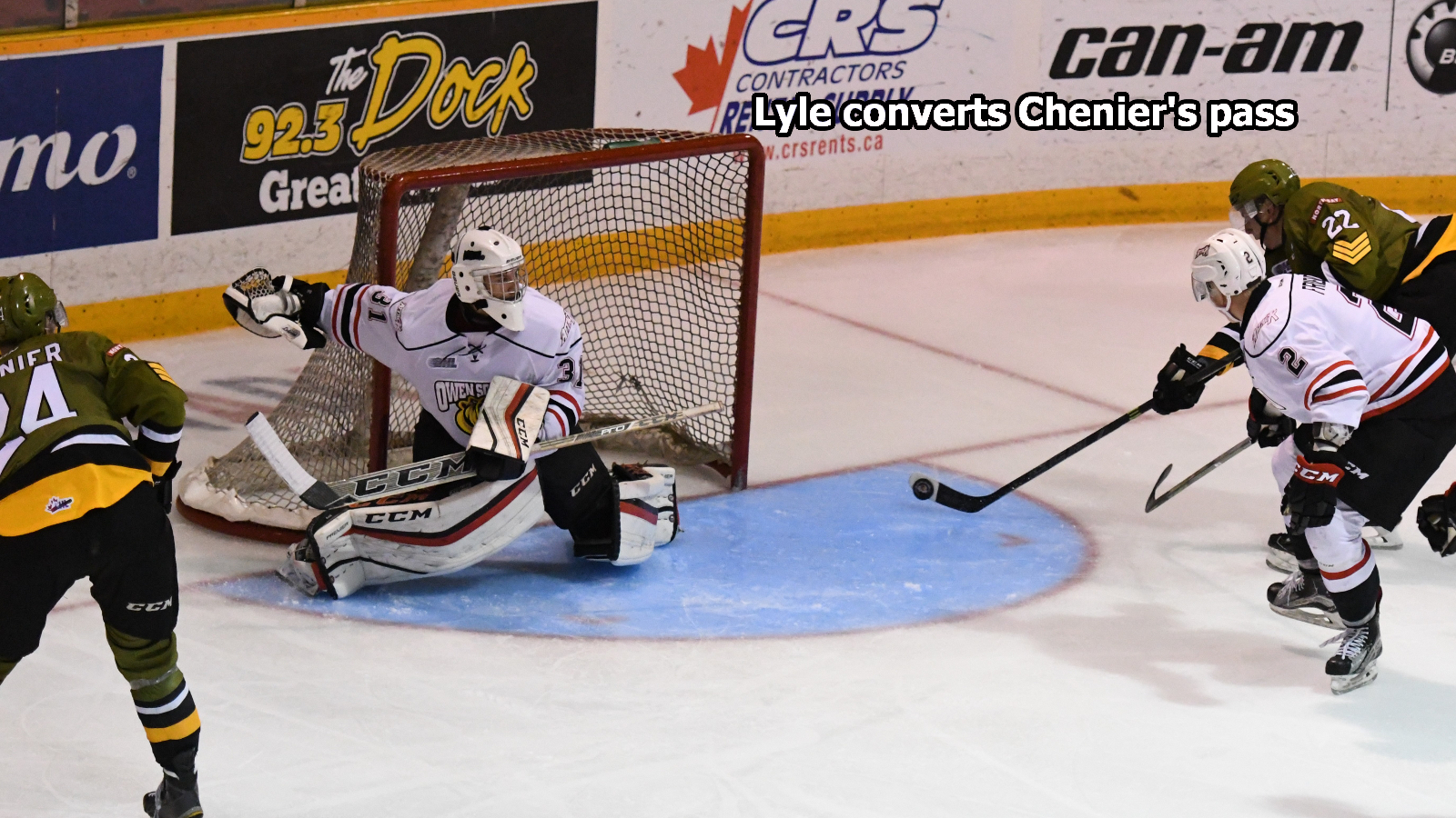 Defenceman Lyle netted what proved to be the winner at 8:37. Brad Chenier carried the puck down the left side and fed the onrushing Lyle at the right side for the redirection that gave Daniels no chance.