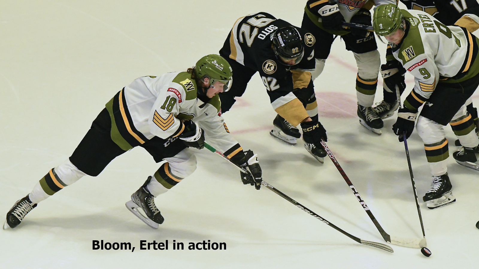 Ertel completed the scoring with his sixth goal on the power play at 13:29 on assists by Bloom and Nelson, taking a crosschecking penalty immediately after the goal for downing Quinton Burns, who was assessed a double roughing call while the Battalion’s Matvey Petrov drew a roughing minor.
