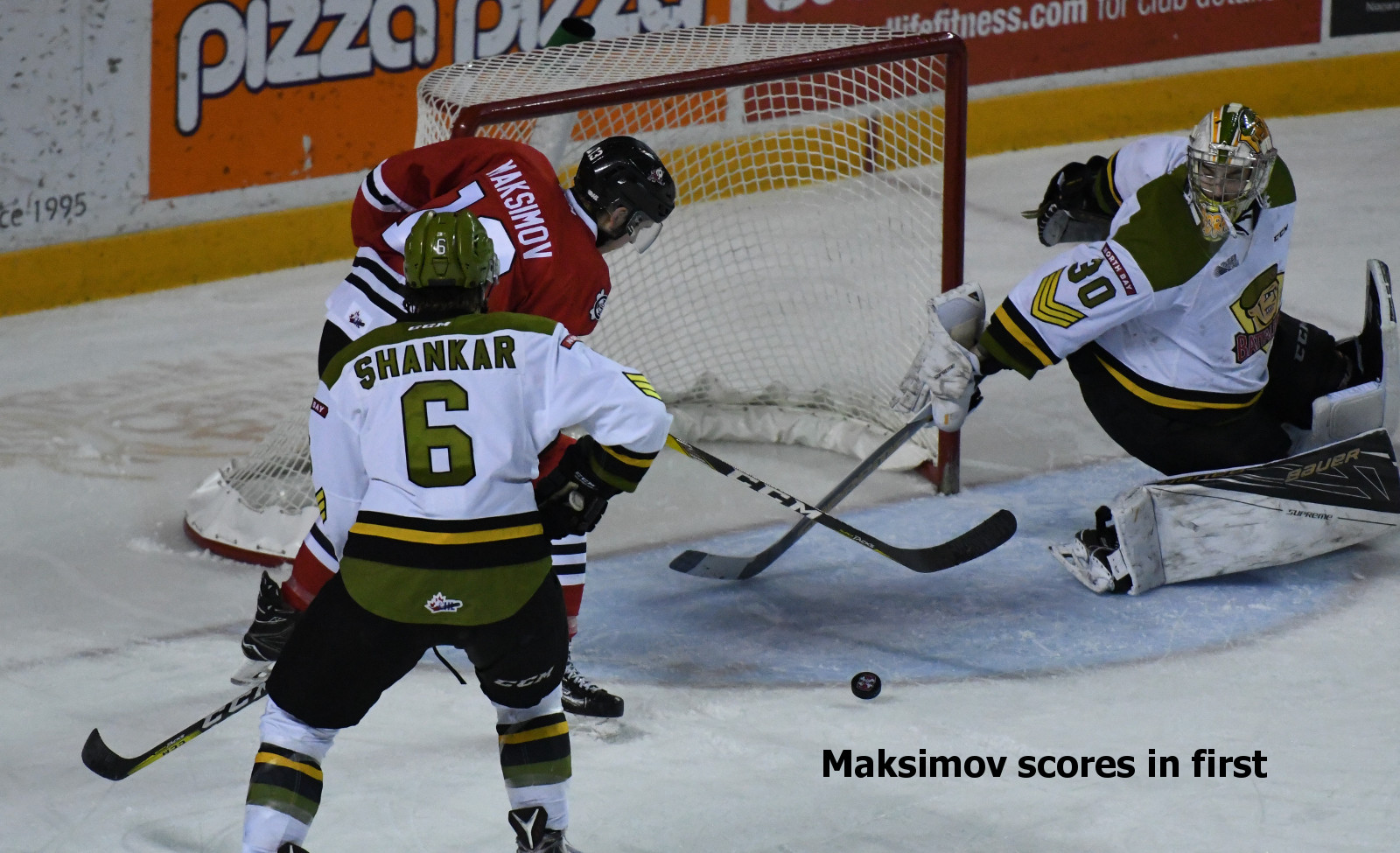 A minute later, Justin Brack jumped the Battalion’s Zach Shankar for a perceived knee on Maksimov. In reality, Maksimov tripped over Shankar’s left foot and sprawled before limping off. In an after-the-fact call, Shankar received a kneeing minor as well as a fighting major, while Brack drew an instigating penalty, major and misconduct.