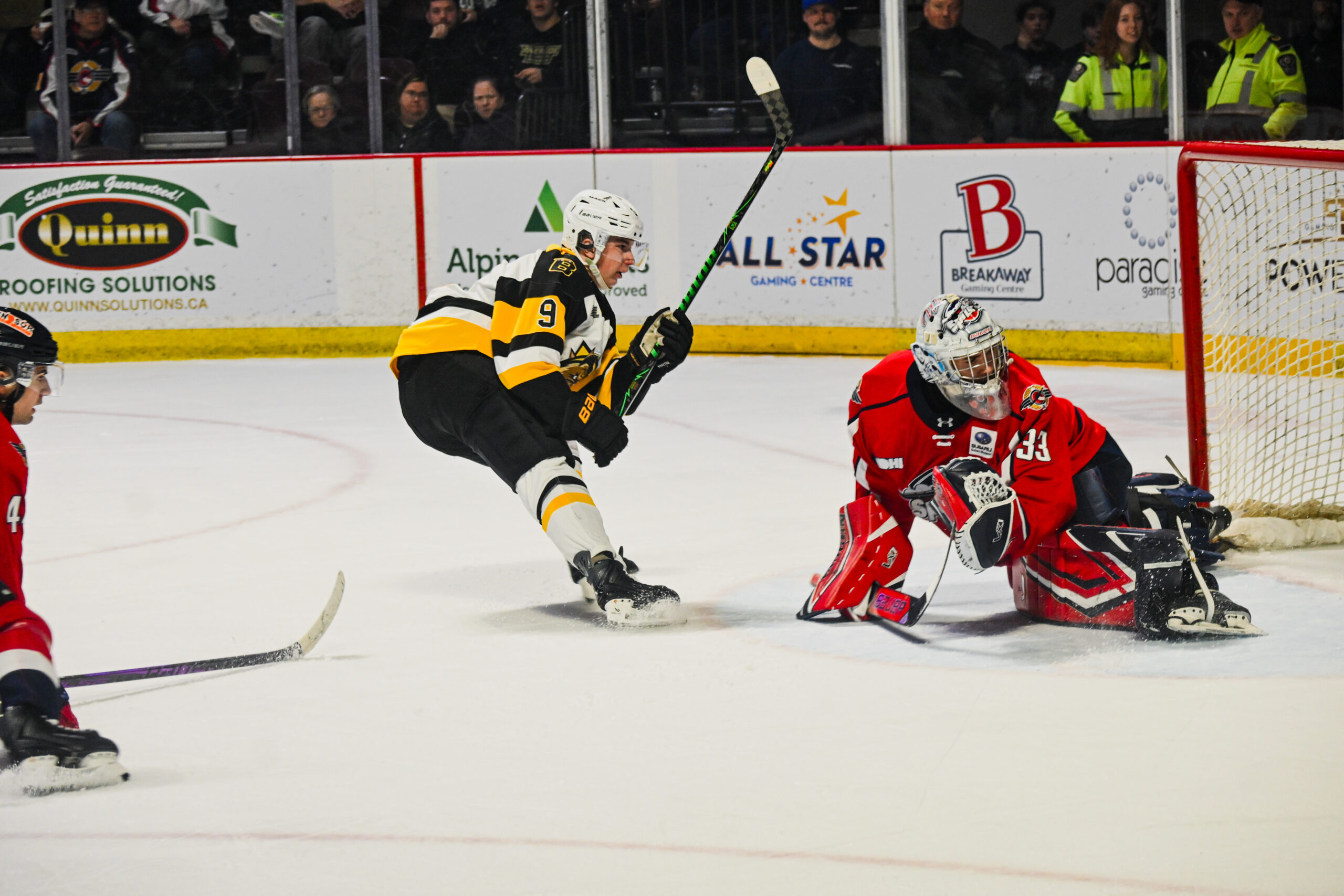 BRANTFORD, ONTARIO. The Bulldogs hit the weekend stretch of their 4-in-6 hosting the Owen Sound Attack while unveiling the club’s new third jersey on Friday infront of a packed Civic Centre crowd. The Friday night meeting marked the Attack’s first and only visit to the Brantford Civic Center for the 2023-24 season.