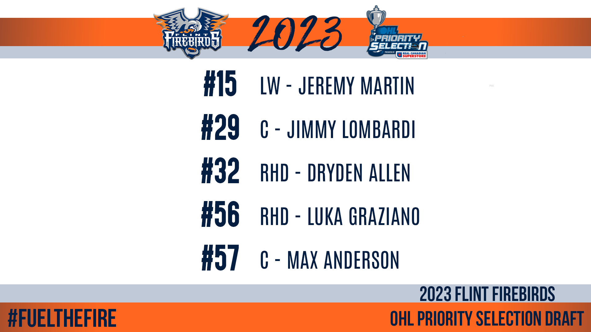 Jeremy Martin Headlines Five Picks for Firebirds on Day One of OHL Priority Selection