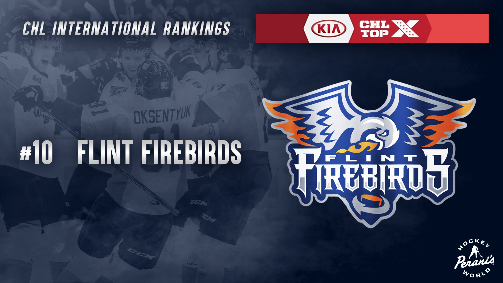 Flint, Mich. – For just the second time in franchise history, the Firebirds are internationally ranked. The Firebirds are listed at #10 in this week’s CHL Top-10 Rankings, presented by Kia.