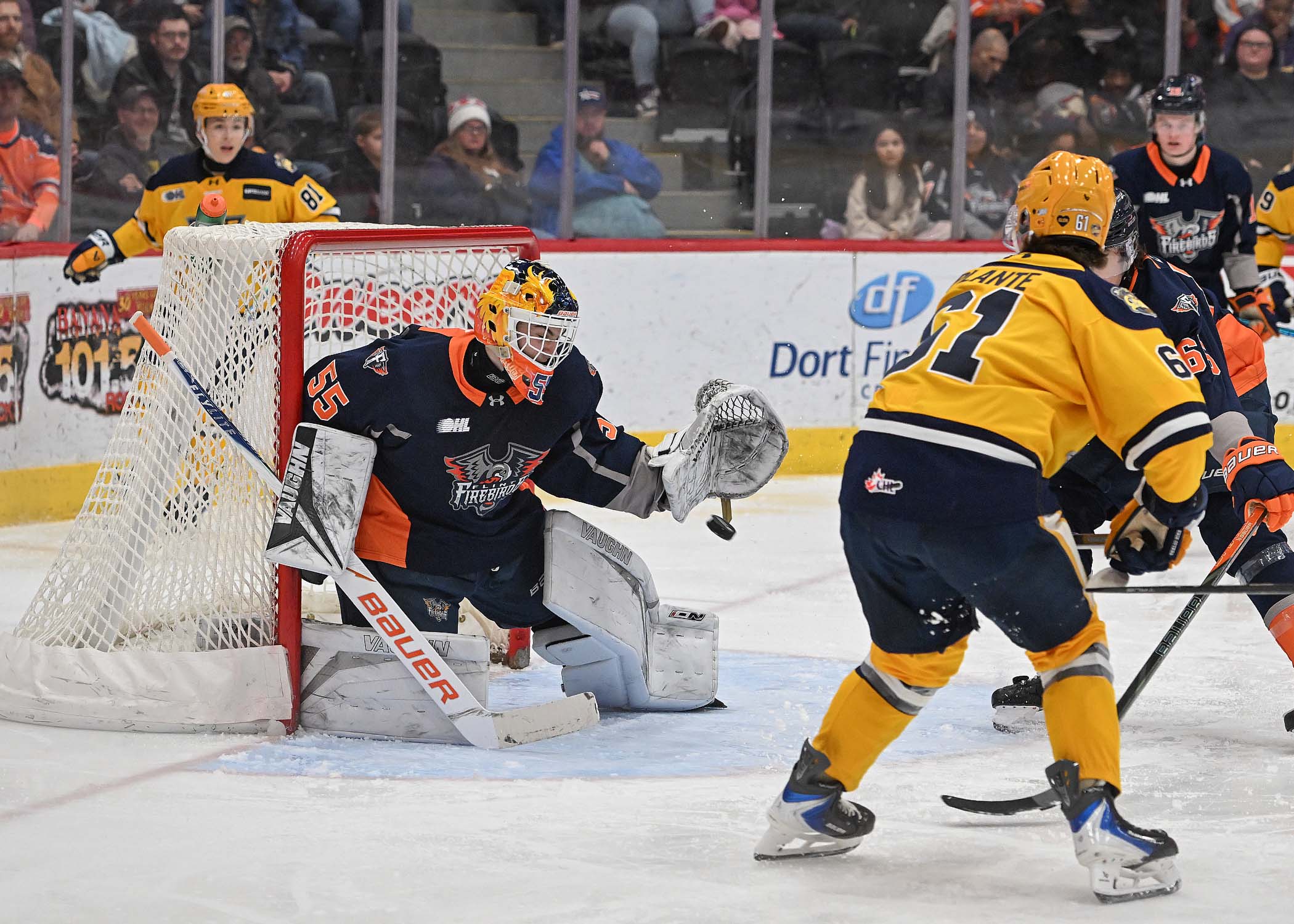 The Flint Firebirds are a proud member of the prestigious 20-team Ontario Hockey League. The OHL is one of three leagues that constitute the 60-team Canadian Hockey League (CHL), which is known as the world’s premiere player development league for the NHL. On NHL opening day rosters in October, 70% of NHL players were CHL alums. Since the Firebirds’ inception in Flint, Michigan five seasons ago, the team has produced 19 NHL signed or drafted players. More than 250 scouts representing all 31 NHL clubs attended a Firebirds game in Flint throughout the 2019-20 season. The Firebirds average nearly 3,000 fans per game at the newly renovated Dort Financial Center, reaching over 100,000 fans each OHL season.