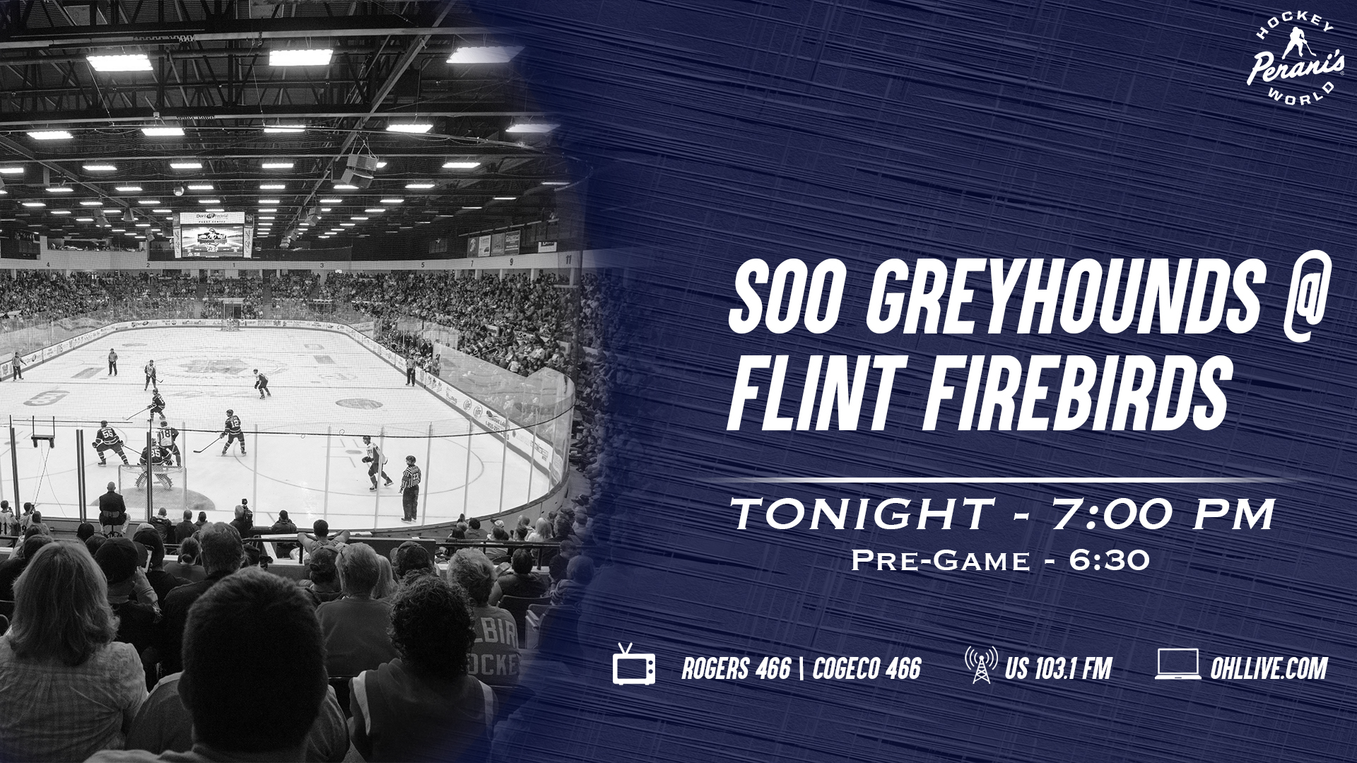 Saturday evening’s contest against the Sault Ste. Marie Greyhounds can be heard live on the radio throughout Flint & Mid-Michigan on US 103.1 FM, online at www.us103.com or by downloading the US 103 app here. Dominic Hennig will call the play-by-play action on the Firebirds Hockey Network (FHN). Pregame coverage will begin 30 minutes prior to puck drop at 6:30 p.m. New this season, fans can watch the FHN TV Pregame Show live on Facebook and Twitter, also beginning at 6:30 p.m.