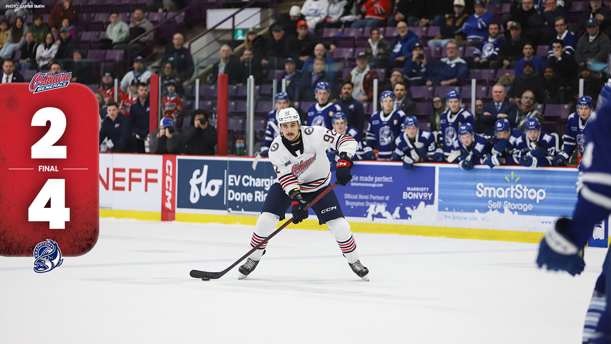 Oshawa, ON — The Oshawa Generals made their first trip to Brampton this season, looking to bounce back after a tough 4-2 loss to the Steelheads last week that ended their five-game win streak. Coming off an exciting overtime victory against the Otters, the Gens were hungry for redemption. However, despite their best efforts, the result remained the same, with Oshawa falling 4-2 once again to the Steelheads.