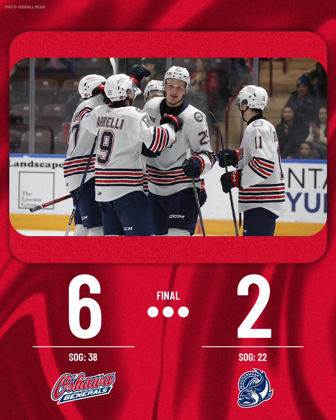 Oshawa, Ont., – It was a big return home for the Generals, as Connor Lockhart scored a hat trick as the Oshawa Generals beat the Mississauga Steelheads 6-2 for their third straight victory.