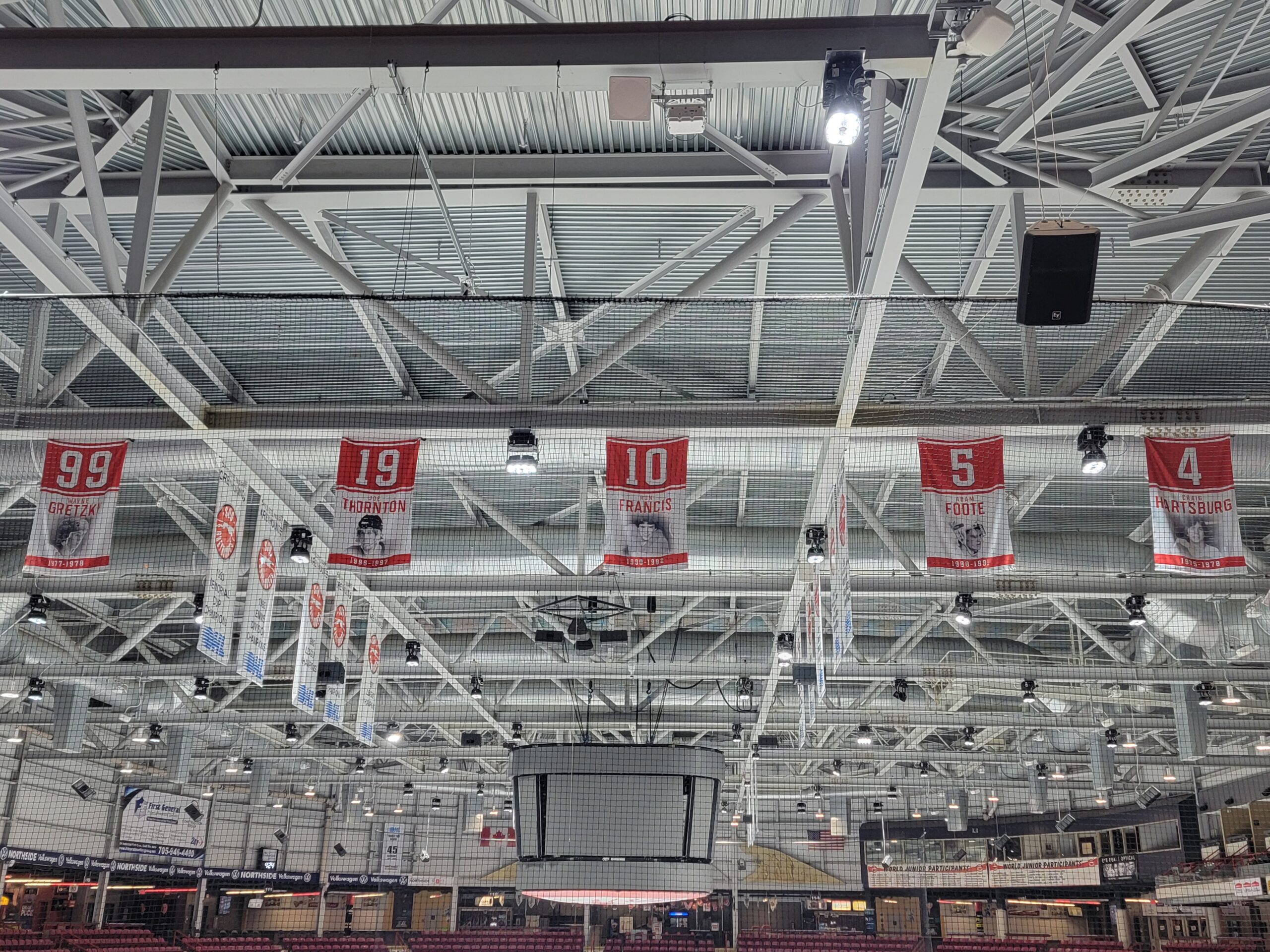 Wayne Gretzky, Craig Hartsburg, Ron Francis, Adam Foote and Joe Thornton, are among a special group of five that have had their Greyhound jerseys retired.
