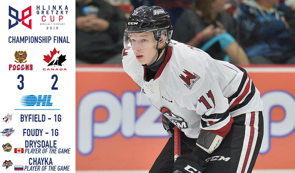 Russian blue line Daniil Chayka (Guelph Storm) earned player of the game honours for his club while Jamie Drysdale (Erie Otters) claimed Canada’s honours.