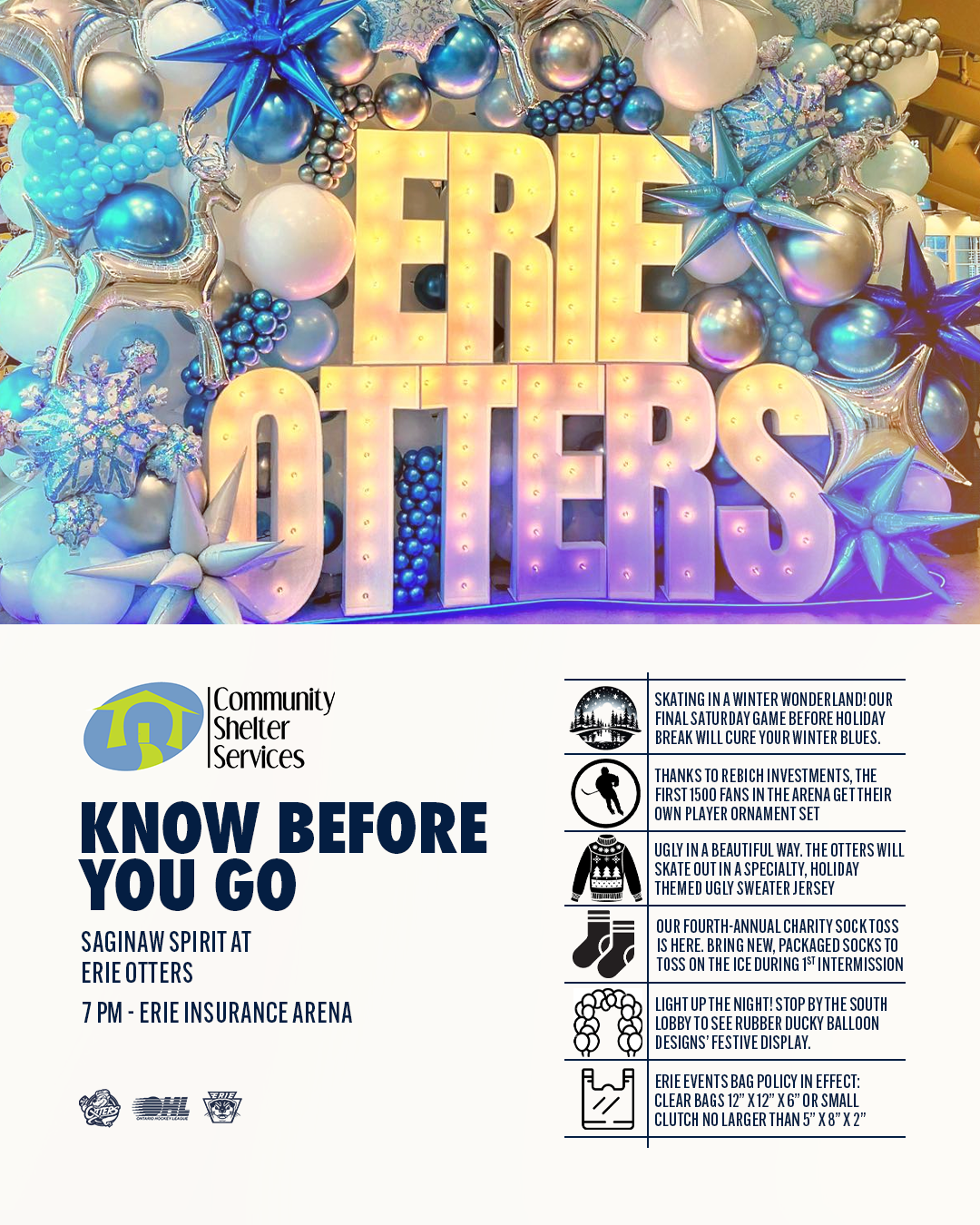 Rockin’ Around The EIA | Saginaw Spirit @ Erie Otters | December 14, 2024 – 7 P.M.