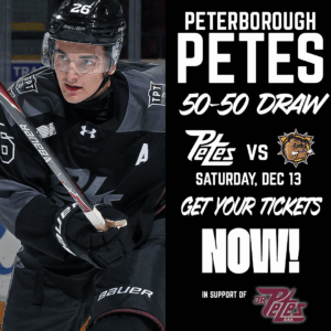 The Petes are back in action on Sunday, February 11, when they travel to Brantford to take on the Brantford Bulldogs. Puck drop is scheduled for 2:00 p.m. at the Brantford Civic Centre. Fans can see the game at the Official Road Game Watch Party at Shoeless Joe’s Peterborough. The game will also be broadcasted on YourTV Peterborough and Freq 90.5.