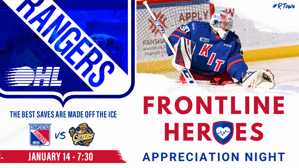 The Kitchener Rangers are happy to announce that we will be offering the opportunity for Frontline Workers (FLW) to receive two (2) complimentary tickets to attend Frontline Heroes Appreciation Night with the Rangers on Friday, January 14. The ticket package will also include two (2) 12-month Ranger’s calendars, two (2) collector t-shirts and a $10 voucher to Authentics, the official store of the Kitchener Rangers.