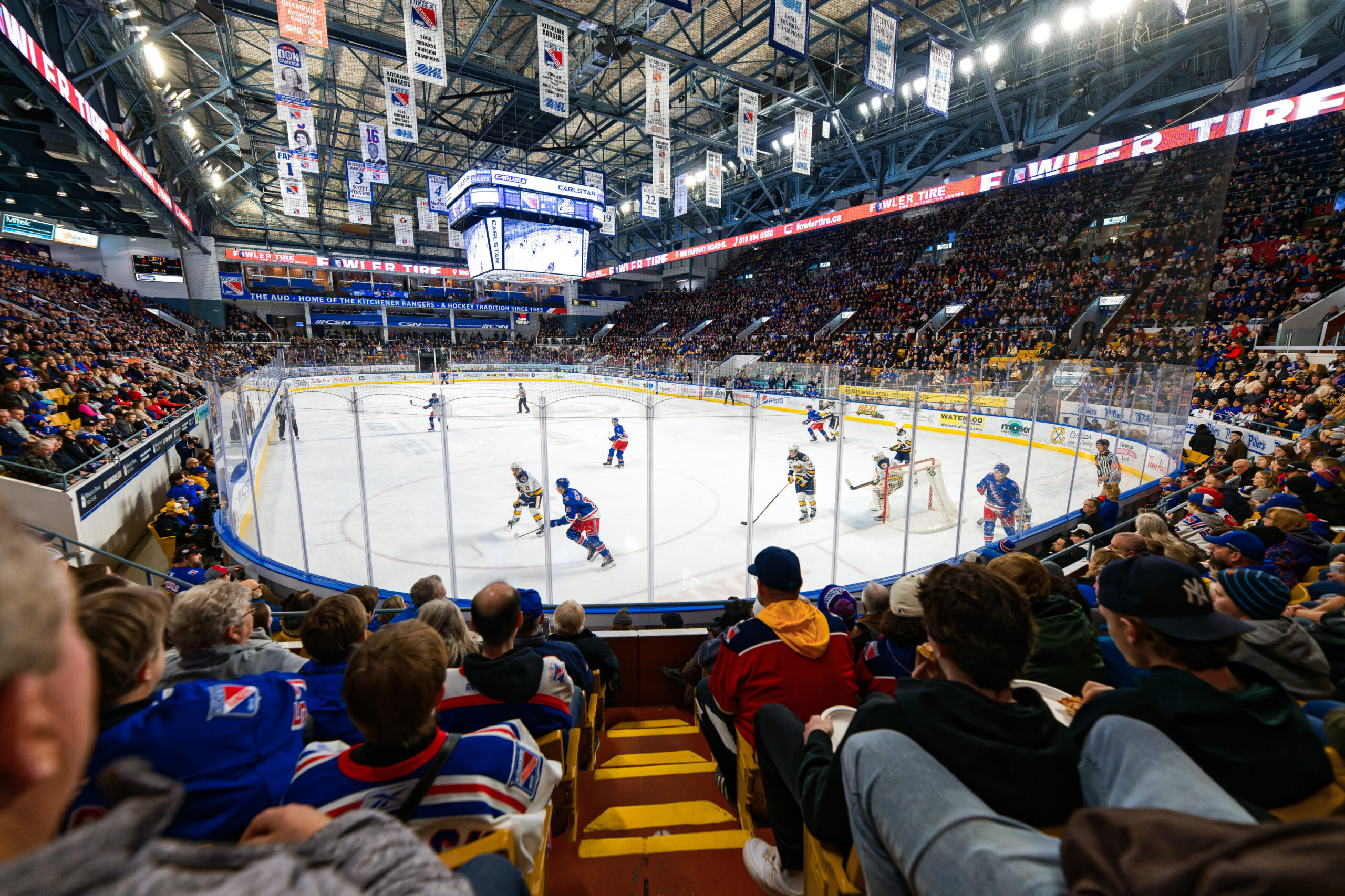 The Aud is part of the Kitchener Memorial Auditorium Complex which is regarded as one of the finest multi-purpose facilities in all of Canada. It is one of Ontario’s premier locations for minor hockey and adult hockey tournaments, major trade shows, exhibitions, meetings, conventions, concert productions, ice events, indoor and outdoor sports events and championship events and of course – Kitchener Rangers hockey!