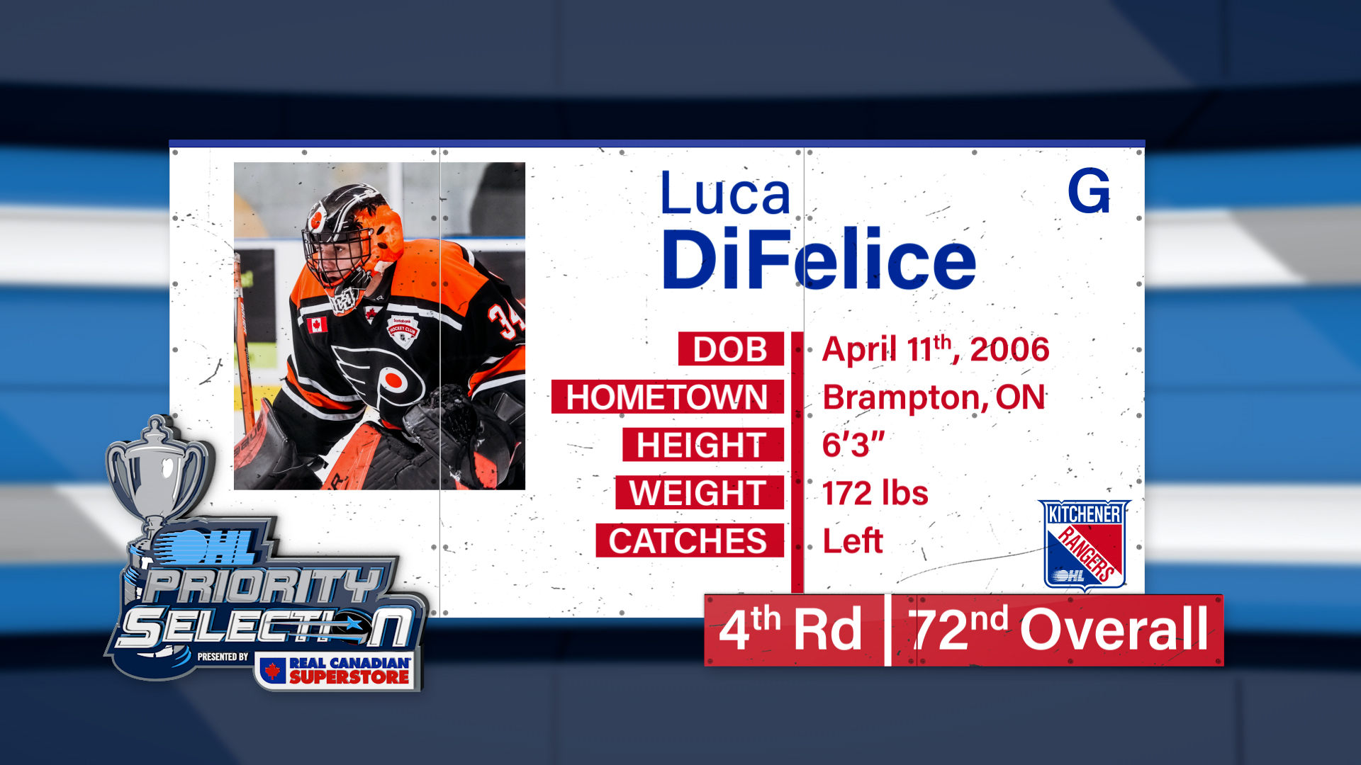 RANGERS VISION: 2022 OHL Priority Selection (4th selection) – Luca DiFelice
