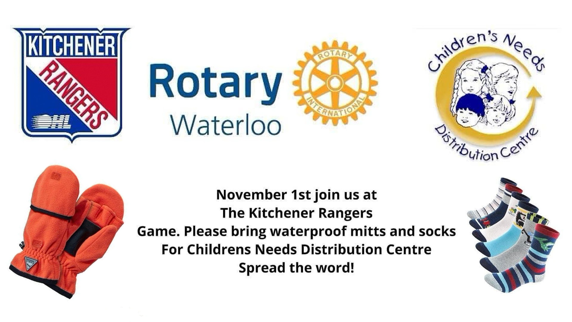 Kitchener Rangers Team Up with CNDC for “Warm Hands and Toes: Socks and Waterproof Mitts” Drive on November 1st