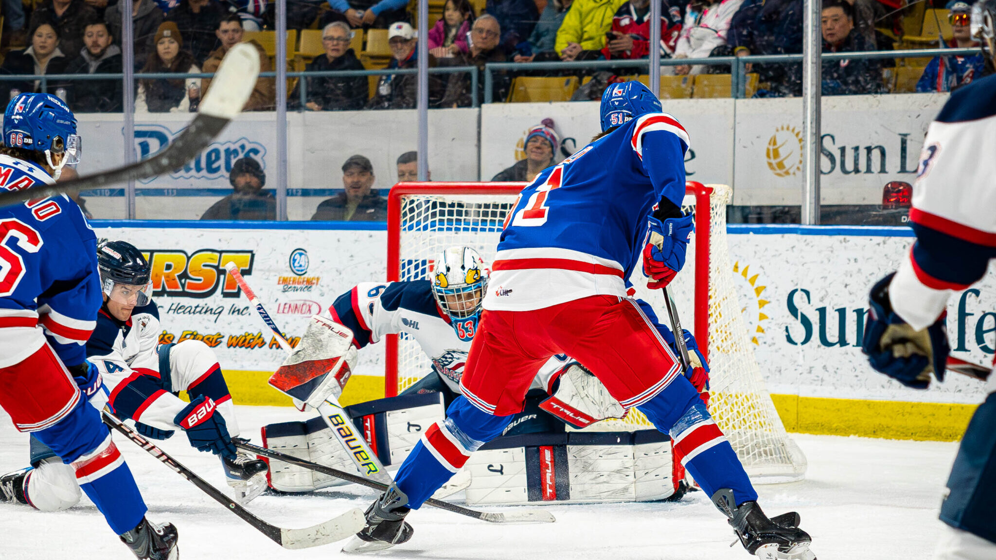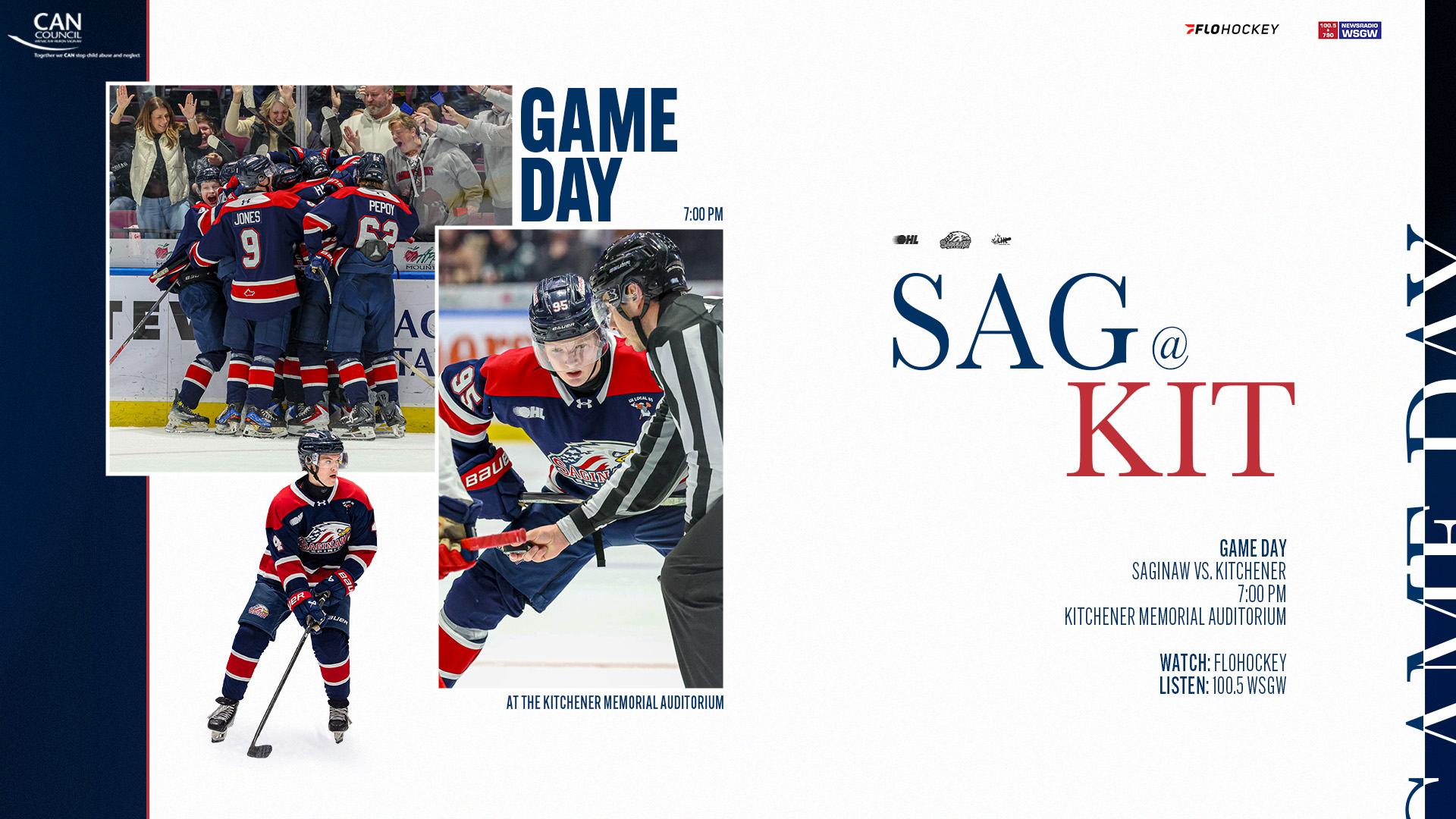 Owen Beck enters Game 2 as Saginaw’s top point-getter this post-season, compiling eight points (2G, 6A) in five games. Beck also continues to add to his 30 career playoff points, which ranks third among all active OHL players. Michael Misa, Josh Bloom, and Hunter Haight all have netted three goals so far. Andrew Oke currently holds the OHL Playoff lead in goals against average (GAA) at 1.60, save percentage (SV%) with a .947, and wins with five.