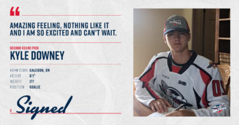 “Going into the draft addressing our goaltending was a high priority. By drafting Kyle in the 2nd round we feel we are stabilizing our future. Kyle will be given every opportunity to make the team as we are excited to have him join our club.” Said General Manager Bill Bowler.