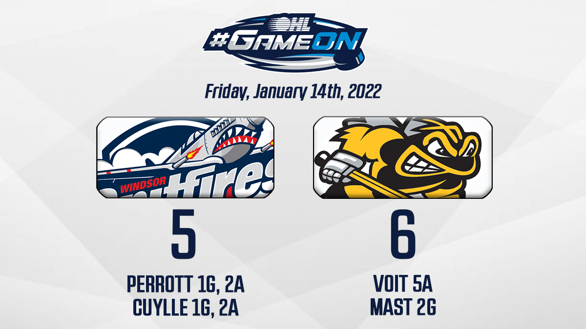 {"league":"ohl","site_api_key":"f1aa699db3d81487","season":"","sponsor":false,"link":false,"days_ahead":"7","days_back":"1","team":"17","team_class":"ohl-wsr","base_url":"https:\/\/chl.ca\/ohl-spitfires","language":"en","view":"scorebar","scoreboard":[{"ID":"28695","SeasonID":"83","league_id":"1","game_number":"546","game_letter":"","game_type":"","quick_score":"0","Date":"2026-02-16","FloCoreEventId":"14478033","FloLiveEventId":"194810","GameDate":"Mon, Feb 16","GameDateISO8601":"2026-02-16T14:05:00-05:00","ScheduledTime":"14:05:00","ScheduledFormattedTime":"2:05 pm","Timezone":"Canada\/Eastern","TicketUrl":"https:\/\/wfcucentre.evenue.net\/event\/S26\/G27","HomeID":"17","HomeCode":"WSR","HomeCity":"Windsor","HomeNickname":"Spitfires","HomeLongName":"Windsor Spitfires","HomeDivision":"West Division","HomeGoals":"7","HomeAudioUrl":"https:\/\/www.iheart.com\/live\/am-800-cklw-7476\/","HomeVideoUrl":"","HomeWebcastUrl":"https:\/\/flosports.link\/3JoZuLy","VisitorID":"34","VisitorCode":"SAG","VisitorCity":"Saginaw","VisitorNickname":"Spirit","VisitorLongName":"Saginaw Spirit","VisitingDivision":"West Division","VisitorGoals":"1","VisitorAudioUrl":"https:\/\/www.alphamediaplayer.com\/wsgwsports","VisitorVideoUrl":"","VisitorWebcastUrl":"https:\/\/flosports.link\/4mp2d6j","Period":"3","PeriodNameShort":"3","PeriodNameLong":"3rd","GameClock":"00:00","GameSummaryUrl":"28695","HomeWins":"36","HomeRegulationLosses":"12","HomeOTLosses":"5","HomeShootoutLosses":"2","VisitorWins":"21","VisitorRegulationLosses":"28","VisitorOTLosses":"3","VisitorShootoutLosses":"4","GameStatus":"4","Intermission":"0","GameStatusString":"Final","GameStatusStringLong":"Final","Ord":"2026-02-16 14:05:00.000000","venue_name":"WFCU Centre","venue_location":"Windsor","league_name":"Ontario Hockey League","league_code":"ohl","TimezoneShort":"EST","HomeLogo":"https:\/\/assets.leaguestat.com\/ohl\/logos\/17.png","VisitorLogo":"https:\/\/assets.leaguestat.com\/ohl\/logos\/34.png","FloHockeyUrl":"https:\/\/flohockey.tv\/events\/14478033","combined_client_code":null},{"ID":"28704","SeasonID":"83","league_id":"1","game_number":"555","game_letter":"","game_type":"","quick_score":"0","Date":"2026-02-20","FloCoreEventId":"14478055","FloLiveEventId":"194821","GameDate":"Fri, Feb 20","GameDateISO8601":"2026-02-20T19:00:00-05:00","ScheduledTime":"19:00:00","ScheduledFormattedTime":"7:00 pm","Timezone":"Canada\/Eastern","TicketUrl":"https:\/\/kwtickets.evenue.net\/events\/RANGERS","HomeID":"10","HomeCode":"KIT","HomeCity":"Kitchener","HomeNickname":"Rangers","HomeLongName":"Kitchener Rangers","HomeDivision":"Midwest Division","HomeGoals":"0","HomeAudioUrl":"https:\/\/kitchener.citynews.ca\/audio\/","HomeVideoUrl":"https:\/\/www.rogerstv.com\/waterloo-region\/onnow","HomeWebcastUrl":"https:\/\/flosports.link\/4oHI5O7","VisitorID":"17","VisitorCode":"WSR","VisitorCity":"Windsor","VisitorNickname":"Spitfires","VisitorLongName":"Windsor Spitfires","VisitingDivision":"West Division","VisitorGoals":"0","VisitorAudioUrl":"https:\/\/www.iheart.com\/live\/am-800-cklw-7476\/","VisitorVideoUrl":"","VisitorWebcastUrl":"https:\/\/flosports.link\/3JoZuLy","Period":"1","PeriodNameShort":"1","PeriodNameLong":"1st","GameClock":"00:00","GameSummaryUrl":"28704","HomeWins":"37","HomeRegulationLosses":"12","HomeOTLosses":"4","HomeShootoutLosses":"2","VisitorWins":"36","VisitorRegulationLosses":"12","VisitorOTLosses":"5","VisitorShootoutLosses":"2","GameStatus":"1","Intermission":"0","GameStatusString":"7:00PM","GameStatusStringLong":"7:00 PM EST","Ord":"2026-02-20 19:00:00.000000","venue_name":"Kitchener Memorial Auditorium","venue_location":"Kitchener","league_name":"Ontario Hockey League","league_code":"ohl","TimezoneShort":"EST","HomeLogo":"https:\/\/assets.leaguestat.com\/ohl\/logos\/10.png","VisitorLogo":"https:\/\/assets.leaguestat.com\/ohl\/logos\/17.png","FloHockeyUrl":"https:\/\/flohockey.tv\/events\/14478055","combined_client_code":null},{"ID":"28720","SeasonID":"83","league_id":"1","game_number":"571","game_letter":"","game_type":"","quick_score":"0","Date":"2026-02-22","FloCoreEventId":"14478083","FloLiveEventId":"194835","GameDate":"Sun, Feb 22","GameDateISO8601":"2026-02-22T16:05:00-05:00","ScheduledTime":"16:05:00","ScheduledFormattedTime":"4:05 pm","Timezone":"Canada\/Eastern","TicketUrl":"https:\/\/wfcucentre.evenue.net\/event\/S26\/G28","HomeID":"17","HomeCode":"WSR","HomeCity":"Windsor","HomeNickname":"Spitfires","HomeLongName":"Windsor Spitfires","HomeDivision":"West Division","HomeGoals":"0","HomeAudioUrl":"https:\/\/www.iheart.com\/live\/am-800-cklw-7476\/","HomeVideoUrl":"","HomeWebcastUrl":"https:\/\/flosports.link\/3JoZuLy","VisitorID":"13","VisitorCode":"FLNT","VisitorCity":"Flint","VisitorNickname":"Firebirds","VisitorLongName":"Flint Firebirds","VisitingDivision":"West Division","VisitorGoals":"0","VisitorAudioUrl":"https:\/\/us103.com\/listen-live\/","VisitorVideoUrl":"","VisitorWebcastUrl":"https:\/\/flosports.link\/3JGZMNF","Period":"1","PeriodNameShort":"1","PeriodNameLong":"1st","GameClock":"00:00","GameSummaryUrl":"28720","HomeWins":"36","HomeRegulationLosses":"12","HomeOTLosses":"5","HomeShootoutLosses":"2","VisitorWins":"37","VisitorRegulationLosses":"14","VisitorOTLosses":"3","VisitorShootoutLosses":"2","GameStatus":"1","Intermission":"0","GameStatusString":"4:05PM","GameStatusStringLong":"4:05 PM EST","Ord":"2026-02-22 16:05:00.000000","venue_name":"WFCU Centre","venue_location":"Windsor","league_name":"Ontario Hockey League","league_code":"ohl","TimezoneShort":"EST","HomeLogo":"https:\/\/assets.leaguestat.com\/ohl\/logos\/17.png","VisitorLogo":"https:\/\/assets.leaguestat.com\/ohl\/logos\/13.png","FloHockeyUrl":"https:\/\/flohockey.tv\/events\/14478083","combined_client_code":null},{"ID":"28728","SeasonID":"83","league_id":"1","game_number":"579","game_letter":"","game_type":"","quick_score":"0","Date":"2026-02-26","FloCoreEventId":"14478100","FloLiveEventId":"194843","GameDate":"Thu, Feb 26","GameDateISO8601":"2026-02