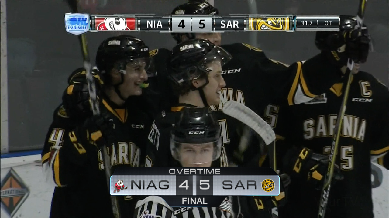 {"league":"ohl","site_api_key":"2976319eb44abe94","season":"","sponsor":false,"link":false,"days_ahead":"6","days_back":"1","team":"15","team_class":"ohl-sar","base_url":"https:\/\/chl.ca\/ohl-sting","language":"en","view":"scorebar","scoreboard":[{"ID":"28769","SeasonID":"83","league_id":"1","game_number":"620","game_letter":"","game_type":"","quick_score":"0","Date":"2026-03-07","FloCoreEventId":"14478291","FloLiveEventId":"194936","GameDate":"Sat, Mar 7","GameDateISO8601":"2026-03-07T19:00:00-05:00","ScheduledTime":"19:00:00","ScheduledFormattedTime":"7:00 pm","Timezone":"Canada\/Eastern","TicketUrl":"https:\/\/tickets.attackhockey.com","HomeID":"11","HomeCode":"OS","HomeCity":"Owen Sound","HomeNickname":"Attack","HomeLongName":"Owen Sound Attack","HomeDivision":"Midwest Division","HomeGoals":"5","HomeAudioUrl":"https:\/\/bayshore.leanplayer.com\/CFOSAM","HomeVideoUrl":"","HomeWebcastUrl":"https:\/\/flosports.link\/47CN8t3","VisitorID":"15","VisitorCode":"SAR","VisitorCity":"Sarnia","VisitorNickname":"Sting","VisitorLongName":"Sarnia Sting","VisitingDivision":"West Division","VisitorGoals":"4","VisitorAudioUrl":"https:\/\/chok.com\/","VisitorVideoUrl":"","VisitorWebcastUrl":"https:\/\/flosports.link\/45XHdNV","Period":"4","PeriodNameShort":"OT","PeriodNameLong":"OT","GameClock":"02:29","GameSummaryUrl":"28769","HomeWins":"24","HomeRegulationLosses":"30","HomeOTLosses":"4","HomeShootoutLosses":"5","VisitorWins":"18","VisitorRegulationLosses":"36","VisitorOTLosses":"8","VisitorShootoutLosses":"1","GameStatus":"4","Intermission":"0","GameStatusString":"Final","GameStatusStringLong":"Final OT","Ord":"2026-03-07 19:00:00.000000","venue_name":"Harry Lumley Bayshore Community Centre","venue_location":"Owen Sound","league_name":"Ontario Hockey League","league_code":"ohl","TimezoneShort":"EST","HomeLogo":"https:\/\/assets.leaguestat.com\/ohl\/logos\/11.png","VisitorLogo":"https:\/\/assets.leaguestat.com\/ohl\/logos\/15.png","FloHockeyUrl":"https:\/\/flohockey.tv\/events\/14478291","combined_client_code":null},{"ID":"28787","SeasonID":"83","league_id":"1","game_number":"638","game_letter":"","game_type":"","quick_score":"0","Date":"2026-03-13","FloCoreEventId":"14478330","FloLiveEventId":"194956","GameDate":"Fri, Mar 13","GameDateISO8601":"2026-03-13T19:05:00-04:00","ScheduledTime":"19:05:00","ScheduledFormattedTime":"7:05 pm","Timezone":"Canada\/Eastern","TicketUrl":"","HomeID":"15","HomeCode":"SAR","HomeCity":"Sarnia","HomeNickname":"Sting","HomeLongName":"Sarnia Sting","HomeDivision":"West Division","HomeGoals":"1","HomeAudioUrl":"https:\/\/chok.com\/","HomeVideoUrl":"","HomeWebcastUrl":"https:\/\/flosports.link\/45XHdNV","VisitorID":"17","VisitorCode":"WSR","VisitorCity":"Windsor","VisitorNickname":"Spitfires","VisitorLongName":"Windsor Spitfires","VisitingDivision":"West Division","VisitorGoals":"2","VisitorAudioUrl":"https:\/\/www.iheart.com\/live\/am-800-cklw-7476\/","VisitorVideoUrl":"","VisitorWebcastUrl":"https:\/\/flosports.link\/3JoZuLy","Period":"2","PeriodNameShort":"2","PeriodNameLong":"2nd","GameClock":"20:00","GameSummaryUrl":"28787","HomeWins":"18","HomeRegulationLosses":"36","HomeOTLosses":"8","HomeShootoutLosses":"1","VisitorWins":"40","VisitorRegulationLosses":"15","VisitorOTLosses":"6","VisitorShootoutLosses":"2","GameStatus":"2","Intermission":"0","GameStatusString":"20:00 2nd","GameStatusStringLong":"20:00 2nd","Ord":"2026-03-13 19:05:00.000000","venue_name":"Progressive Auto Sales Arena","venue_location":"Sarnia","league_name":"Ontario Hockey League","league_code":"ohl","TimezoneShort":"EDT","HomeLogo":"https:\/\/assets.leaguestat.com\/ohl\/logos\/15.png","VisitorLogo":"https:\/\/assets.leaguestat.com\/ohl\/logos\/17.png","FloHockeyUrl":"https:\/\/flohockey.tv\/live\/194956","combined_client_code":null},{"ID":"28798","SeasonID":"83","league_id":"1","game_number":"649","game_letter":"","game_type":"","quick_score":"0","Date":"2026-03-15","FloCoreEventId":"14478349","FloLiveEventId":"194965","GameDate":"Sun, Mar 15","GameDateISO8601":"2026-03-15T14:05:00-04:00","ScheduledTime":"14:05:00","ScheduledFormattedTime":"2:05 pm","Timezone":"Canada\/Eastern","TicketUrl":"","HomeID":"15","HomeCode":"SAR","HomeCity":"Sarnia","HomeNickname":"Sting","HomeLongName":"Sarnia Sting","HomeDivision":"West Division","HomeGoals":"0","HomeAudioUrl":"https:\/\/chok.com\/","HomeVideoUrl":"","HomeWebcastUrl":"https:\/\/flosports.link\/45XHdNV","VisitorID":"34","VisitorCode":"SAG","VisitorCity":"Saginaw","VisitorNickname":"Spirit","VisitorLongName":"Saginaw Spirit","VisitingDivision":"West Division","VisitorGoals":"0","VisitorAudioUrl":"https:\/\/www.alphamediaplayer.com\/wsgwsports","VisitorVideoUrl":"","VisitorWebcastUrl":"https:\/\/flosports.link\/4mp2d6j","Period":"1","PeriodNameShort":"1","PeriodNameLong":"1st","GameClock":"00:00","GameSummaryUrl":"28798","HomeWins":"18","HomeRegulationLosses":"36","HomeOTLosses":"8","HomeShootoutLosses":"1","VisitorWins":"24","VisitorRegulationLosses":"32","VisitorOTLosses":"3","VisitorShootoutLosses":"4","GameStatus":"1","Intermission":"0","GameStatusString":"2:05PM","GameStatusStringLong":"2:05 PM EDT","Ord":"2026-03-15 14:05:00.000000","venue_name":"Progressive Auto Sales Arena","venue_location":"Sarnia","league_name":"Ontario Hockey League","league_code":"ohl","TimezoneShort":"EDT","HomeLogo":"https:\/\/assets.leaguestat.com\/ohl\/logos\/15.png","VisitorLogo":"https:\/\/assets.leaguestat.com\/ohl\/logos\/34.png","FloHockeyUrl":"https:\/\/flohockey.tv\/events\/14478349","combined_client_code":null},{"ID":"28810","SeasonID":"83","league_id":"1","game_number":"661","game_letter":"","game_type":"","quick_score":"0","Date":"2026-03-18","FloCoreEventId":"14478374","FloLiveEventId":"194978","GameDate":"Wed, Mar 18","GameDateISO8601":"2026-03-18T19:05:00-04:00","ScheduledTime":"19:05:00","ScheduledFormattedTime":"7:05 pm","Timezone":"Canada\/Eastern","TicketUrl":"","HomeID":"15","HomeCode":"SAR","HomeCity":"Sarnia","HomeNickname":"Sting","HomeLongName":"Sarnia 