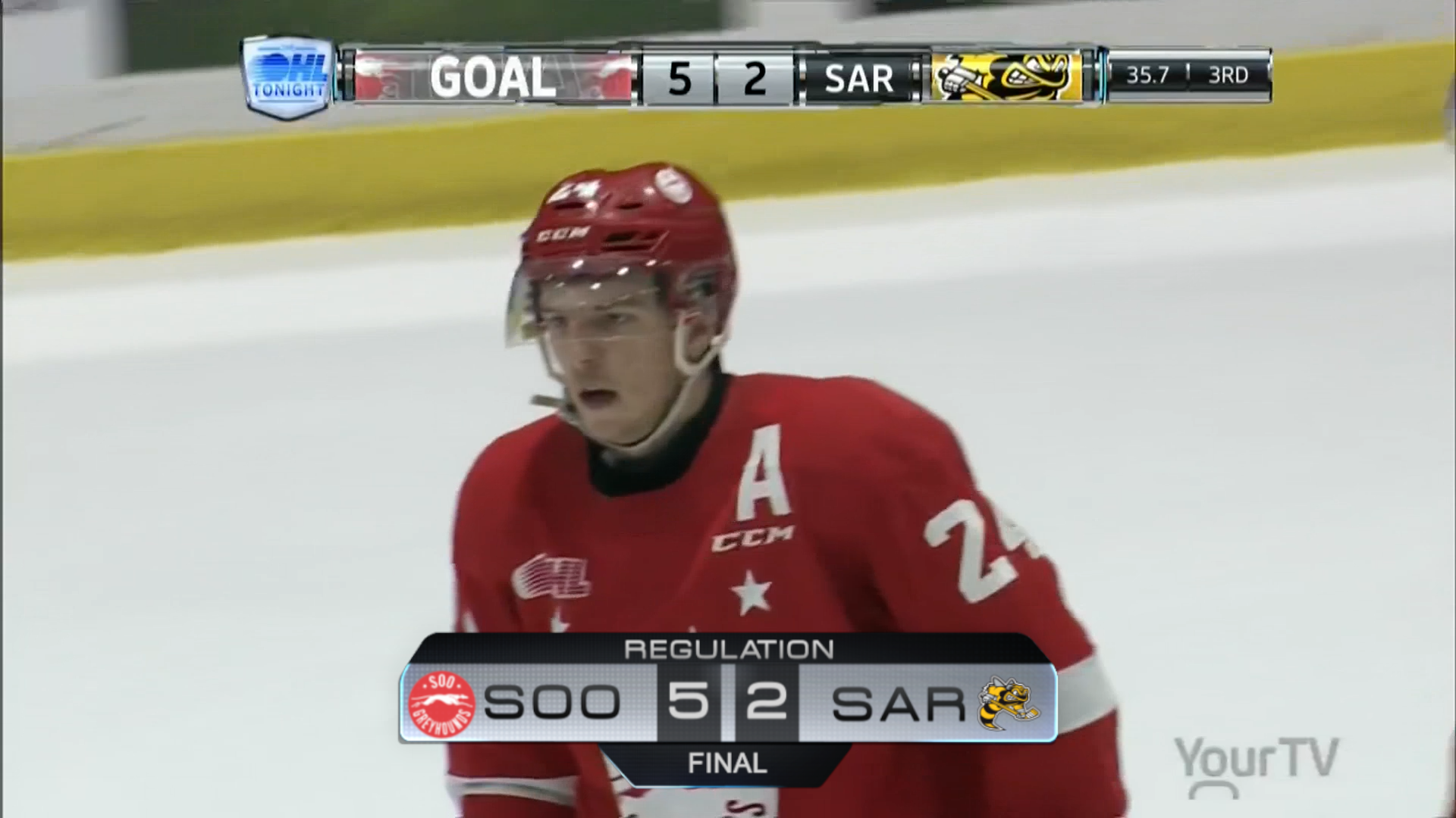 {"league":"ohl","site_api_key":"2976319eb44abe94","season":"","sponsor":false,"link":false,"days_ahead":"6","days_back":"1","team":"15","team_class":"ohl-sar","base_url":"https:\/\/chl.ca\/ohl-sting","language":"en","view":"scorebar","scoreboard":[{"ID":"28697","SeasonID":"83","league_id":"1","game_number":"548","game_letter":"","game_type":"","quick_score":"0","Date":"2026-02-18","FloCoreEventId":"14478041","FloLiveEventId":"194814","GameDate":"Wed, Feb 18","GameDateISO8601":"2026-02-18T19:05:00-05:00","ScheduledTime":"19:05:00","ScheduledFormattedTime":"7:05 pm","Timezone":"Canada\/Eastern","TicketUrl":"","HomeID":"15","HomeCode":"SAR","HomeCity":"Sarnia","HomeNickname":"Sting","HomeLongName":"Sarnia Sting","HomeDivision":"West Division","HomeGoals":"2","HomeAudioUrl":"https:\/\/chok.com\/","HomeVideoUrl":"","HomeWebcastUrl":"https:\/\/flosports.link\/45XHdNV","VisitorID":"9","VisitorCode":"GUE","VisitorCity":"Guelph","VisitorNickname":"Storm","VisitorLongName":"Guelph Storm","VisitingDivision":"Midwest Division","VisitorGoals":"3","VisitorAudioUrl":"https:\/\/globalnews.ca\/radio\/cjoy\/player\/","VisitorVideoUrl":"https:\/\/flosports.link\/41fs8ES","VisitorWebcastUrl":"https:\/\/flosports.link\/41fs8ES","Period":"4","PeriodNameShort":"OT","PeriodNameLong":"OT","GameClock":"03:10","GameSummaryUrl":"28697","HomeWins":"17","HomeRegulationLosses":"33","HomeOTLosses":"6","HomeShootoutLosses":"1","VisitorWins":"24","VisitorRegulationLosses":"26","VisitorOTLosses":"2","VisitorShootoutLosses":"2","GameStatus":"4","Intermission":"0","GameStatusString":"Final","GameStatusStringLong":"Final OT","Ord":"2026-02-18 19:05:00.000000","venue_name":"Progressive Auto Sales Arena","venue_location":"Sarnia","league_name":"Ontario Hockey League","league_code":"ohl","TimezoneShort":"EST","HomeLogo":"https:\/\/assets.leaguestat.com\/ohl\/logos\/15.png","VisitorLogo":"https:\/\/assets.leaguestat.com\/ohl\/logos\/9.png","FloHockeyUrl":"https:\/\/flohockey.tv\/events\/14478041","combined_client_code":null},{"ID":"28707","SeasonID":"83","league_id":"1","game_number":"558","game_letter":"","game_type":"","quick_score":"0","Date":"2026-02-20","FloCoreEventId":"14478061","FloLiveEventId":"194824","GameDate":"Fri, Feb 20","GameDateISO8601":"2026-02-20T19:07:00-05:00","ScheduledTime":"19:07:00","ScheduledFormattedTime":"7:07 pm","Timezone":"Canada\/Eastern","TicketUrl":"","HomeID":"16","HomeCode":"SOO","HomeCity":"Sault Ste. Marie","HomeNickname":"Greyhounds","HomeLongName":"Soo Greyhounds","HomeDivision":"West Division","HomeGoals":"6","HomeAudioUrl":"https:\/\/streamdb8web.securenetsystems.net\/cirruscontent\/WSUE","HomeVideoUrl":"","HomeWebcastUrl":"https:\/\/flosports.link\/4oJ5rTq","VisitorID":"15","VisitorCode":"SAR","VisitorCity":"Sarnia","VisitorNickname":"Sting","VisitorLongName":"Sarnia Sting","VisitingDivision":"West Division","VisitorGoals":"3","VisitorAudioUrl":"https:\/\/chok.com\/","VisitorVideoUrl":"","VisitorWebcastUrl":"https:\/\/flosports.link\/45XHdNV","Period":"3","PeriodNameShort":"3","PeriodNameLong":"3rd","GameClock":"00:00","GameSummaryUrl":"28707","HomeWins":"34","HomeRegulationLosses":"16","HomeOTLosses":"1","HomeShootoutLosses":"5","VisitorWins":"17","VisitorRegulationLosses":"33","VisitorOTLosses":"6","VisitorShootoutLosses":"1","GameStatus":"4","Intermission":"0","GameStatusString":"Final","GameStatusStringLong":"Final","Ord":"2026-02-20 19:07:00.000000","venue_name":"GFL Memorial Gardens","venue_location":"Sault Ste. Marie, ON","league_name":"Ontario Hockey League","league_code":"ohl","TimezoneShort":"EST","HomeLogo":"https:\/\/assets.leaguestat.com\/ohl\/logos\/16.png","VisitorLogo":"https:\/\/assets.leaguestat.com\/ohl\/logos\/15.png","FloHockeyUrl":"https:\/\/flohockey.tv\/events\/14478061","combined_client_code":null},{"ID":"28713","SeasonID":"83","league_id":"1","game_number":"564","game_letter":"","game_type":"","quick_score":"0","Date":"2026-02-21","FloCoreEventId":"14478071","FloLiveEventId":"194829","GameDate":"Sat, Feb 21","GameDateISO8601":"2026-02-21T19:05:00-05:00","ScheduledTime":"19:05:00","ScheduledFormattedTime":"7:05 pm","Timezone":"Canada\/Eastern","TicketUrl":"https:\/\/www.ticketmaster.com\/saginaw-spirit-tickets\/artist\/836382","HomeID":"34","HomeCode":"SAG","HomeCity":"Saginaw","HomeNickname":"Spirit","HomeLongName":"Saginaw Spirit","HomeDivision":"West Division","HomeGoals":"0","HomeAudioUrl":"https:\/\/www.alphamediaplayer.com\/wsgwsports","HomeVideoUrl":"","HomeWebcastUrl":"https:\/\/flosports.link\/4mp2d6j","VisitorID":"15","VisitorCode":"SAR","VisitorCity":"Sarnia","VisitorNickname":"Sting","VisitorLongName":"Sarnia Sting","VisitingDivision":"West Division","VisitorGoals":"0","VisitorAudioUrl":"https:\/\/chok.com\/","VisitorVideoUrl":"","VisitorWebcastUrl":"https:\/\/flosports.link\/45XHdNV","Period":"1","PeriodNameShort":"1","PeriodNameLong":"1st","GameClock":"00:00","GameSummaryUrl":"28713","HomeWins":"21","HomeRegulationLosses":"28","HomeOTLosses":"3","HomeShootoutLosses":"4","VisitorWins":"17","VisitorRegulationLosses":"33","VisitorOTLosses":"6","VisitorShootoutLosses":"1","GameStatus":"1","Intermission":"0","GameStatusString":"7:05PM","GameStatusStringLong":"7:05 PM EST","Ord":"2026-02-21 19:05:00.000000","venue_name":"Dow Event Center","venue_location":"Saginaw","league_name":"Ontario Hockey League","league_code":"ohl","TimezoneShort":"EST","HomeLogo":"https:\/\/assets.leaguestat.com\/ohl\/logos\/34.png","VisitorLogo":"https:\/\/assets.leaguestat.com\/ohl\/logos\/15.png","FloHockeyUrl":"https:\/\/flohockey.tv\/events\/14478071","combined_client_code":null},{"ID":"28733","SeasonID":"83","league_id":"1","game_number":"584","game_letter":"","game_type":"","quick_score":"0","Date":"2026-02-27","FloCoreEventId":"14478112","FloLiveEventId":"194849","GameDate":"Fri, Feb 27","GameDateISO8601":"2026-02-27T19:05:00-05:00","ScheduledTime":"19:05:00","ScheduledFormattedTime":"7:05 pm","Timezone":"Canada\/Eastern","TicketUrl":"","HomeID":"15","HomeCode":"SAR","Hom