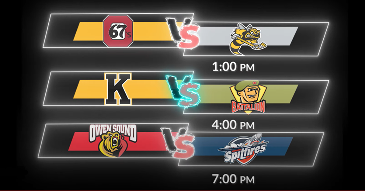 The broadcast begins at 1:00 pm from Sarnia when the Sting host the Ottawa 67’s. Fans can then enjoy the Frontenacs and Battalion face off in an Eastern Conference clash, followed by the Attack at the Spitfires to cap off the day.