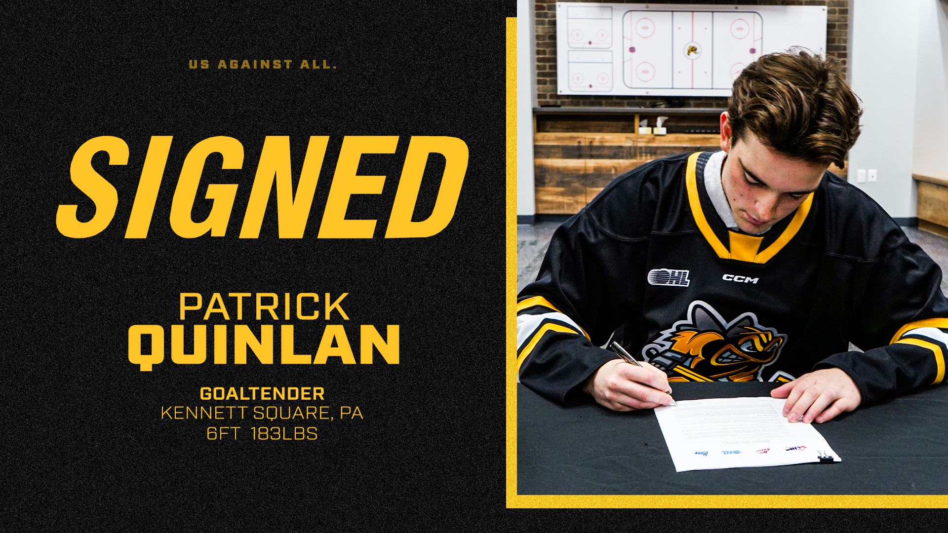 The Sarnia Sting are proud to announce that goaltender Patrick Quinlan has officially signed a Standard Player Agreement with the hockey club.